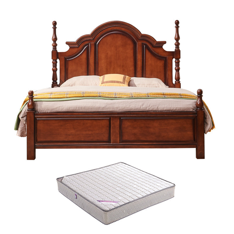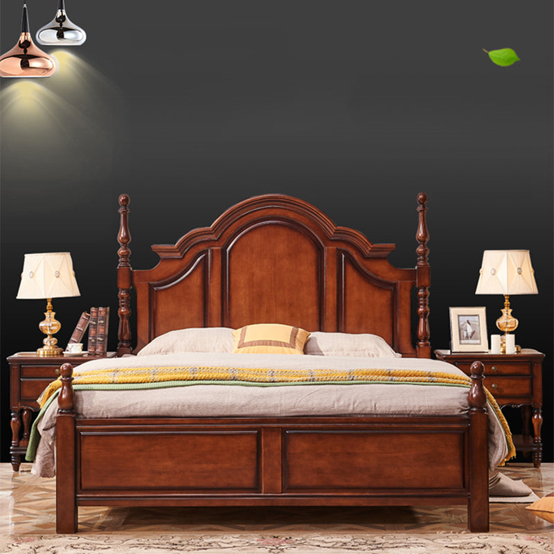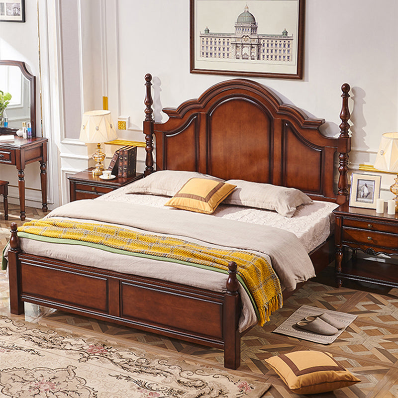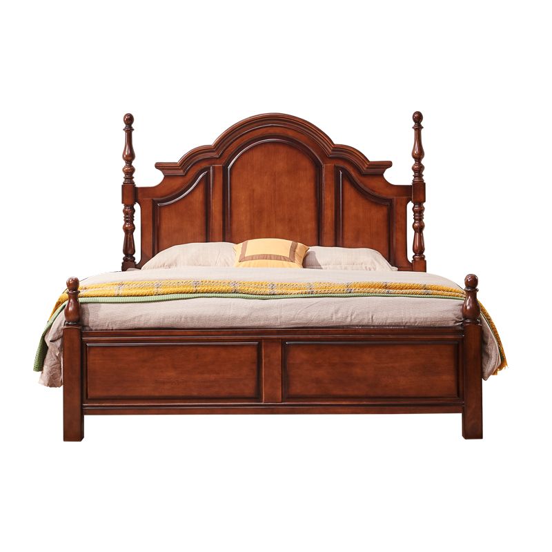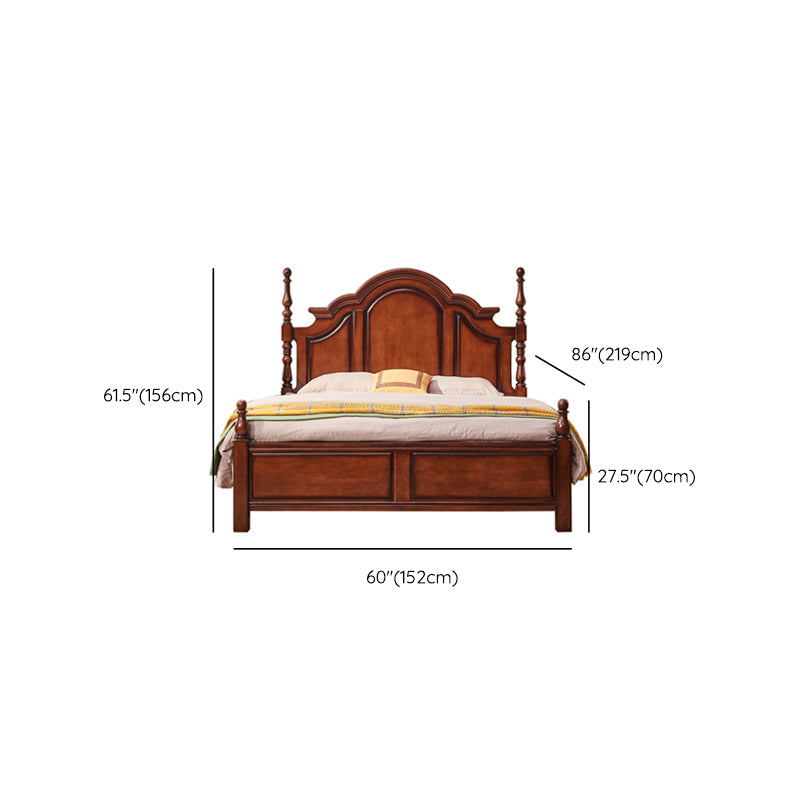 Letto a piattaforma in legno di gomma marrone 61.41 "letto a pannello pieno alto con testiera