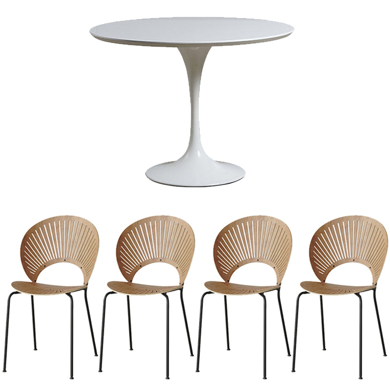 Set da pranzo contemporaneo da 1/5 pezzi con tavolo rotondo e sedie marroni opache