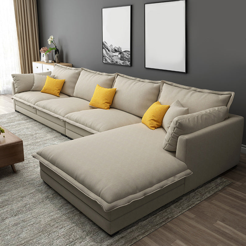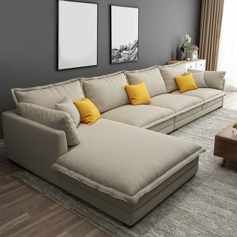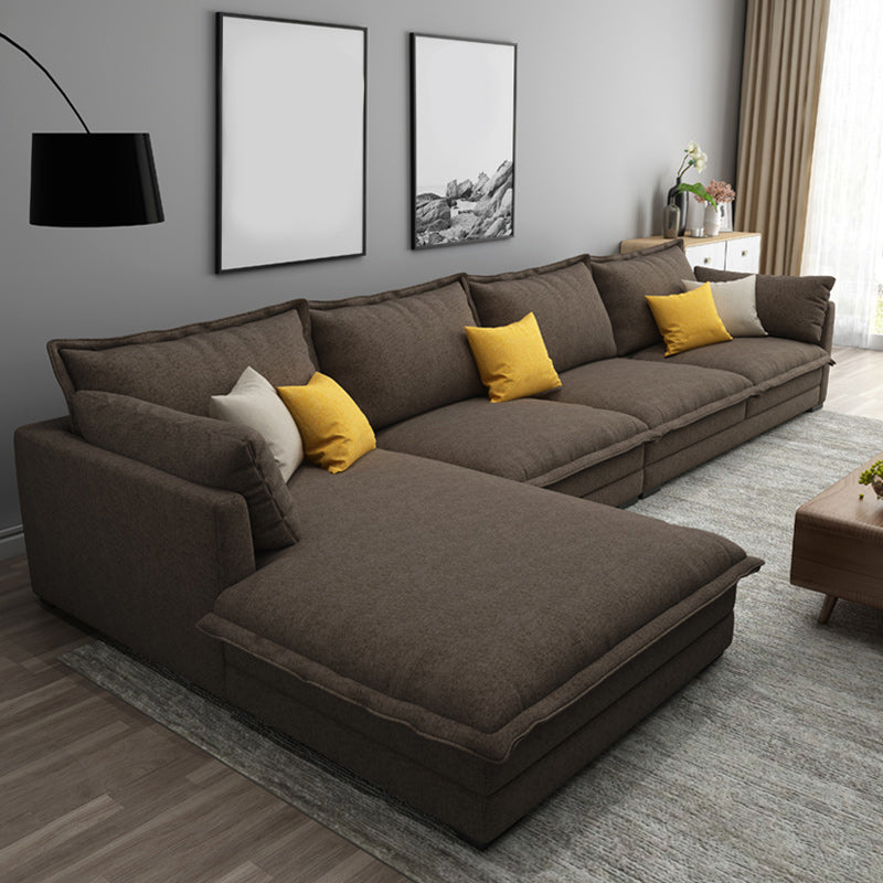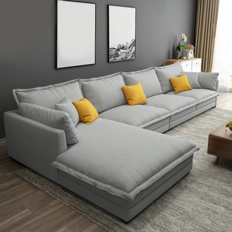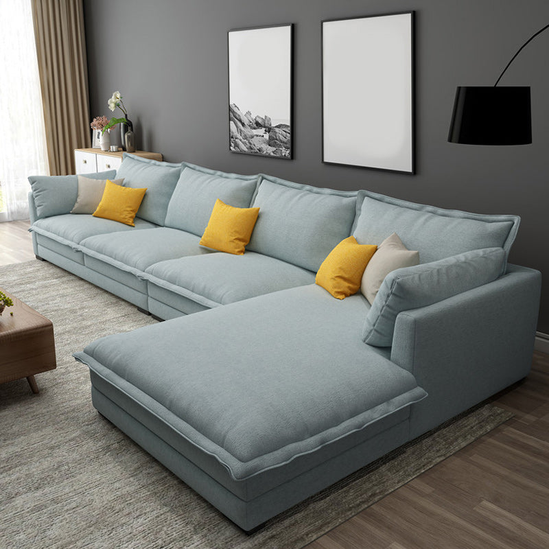 Divano in tessuto contemporaneo e chaise con cuscini per soggiorno