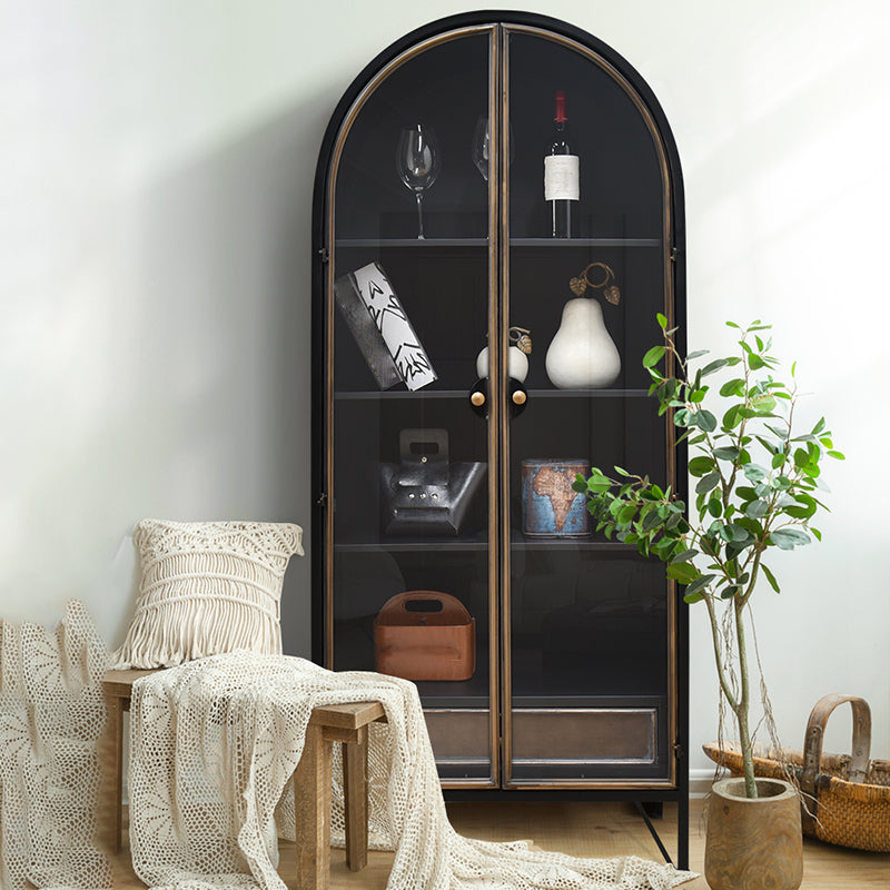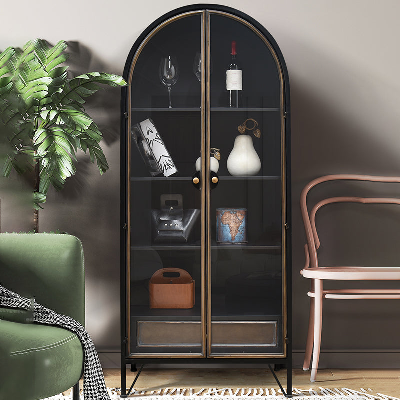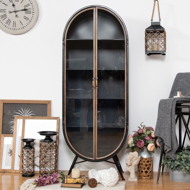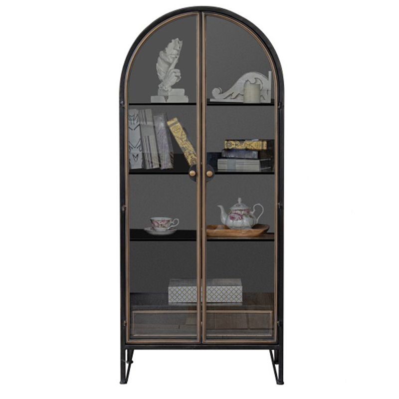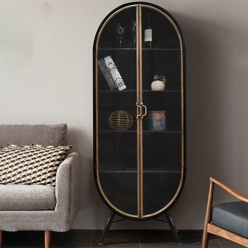 Porte di vetro contemporanee Display mobile con base di ferro per soggiorno