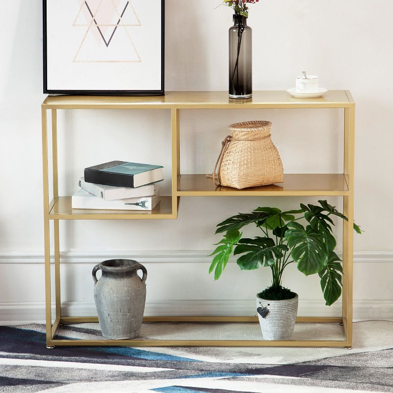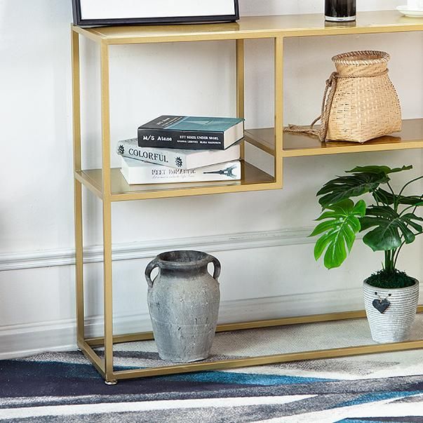 Tavolo da divano di divano console di ferro contemporaneo Tavolo da rettangolo con ripiani per Hall
