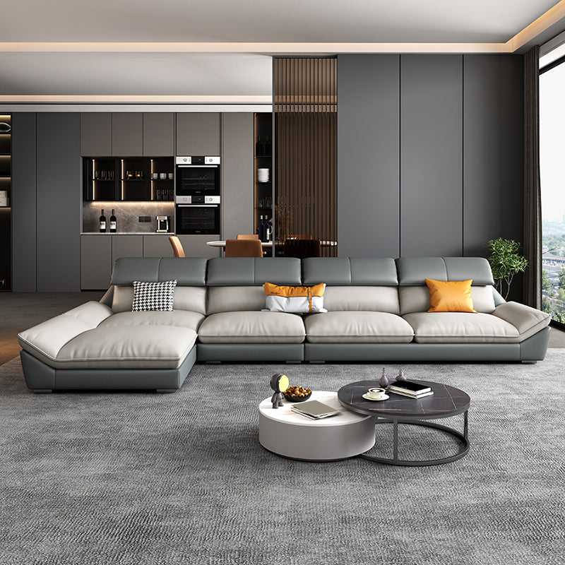 Contemporary Light-grey Sofa/Sentional with Pillow Top Arm 35.43" Clearhalo 'furn' 'furn_sectionals' 'Furniture' 'Living Room Furniture' 'Sectionals' 1200x1200_f6f055f2-8910-4df6-9786-5393afc0bbc7