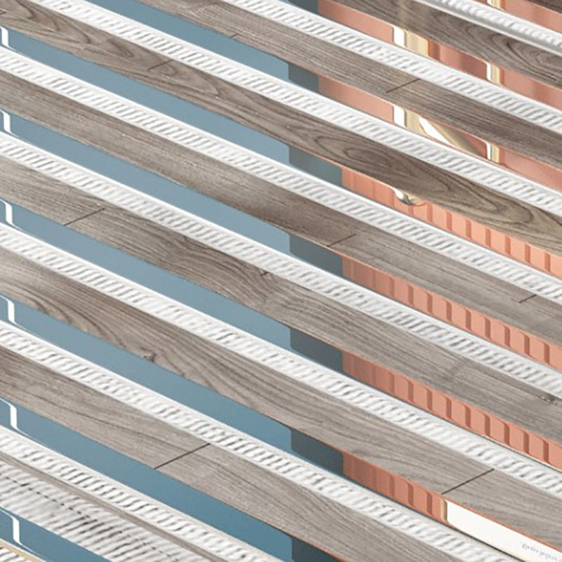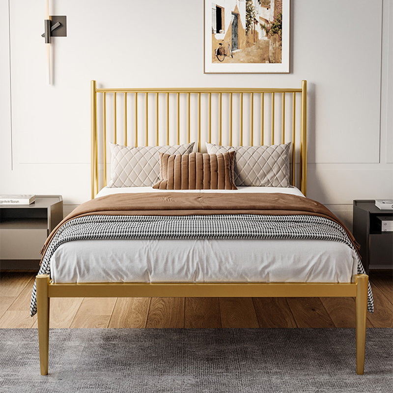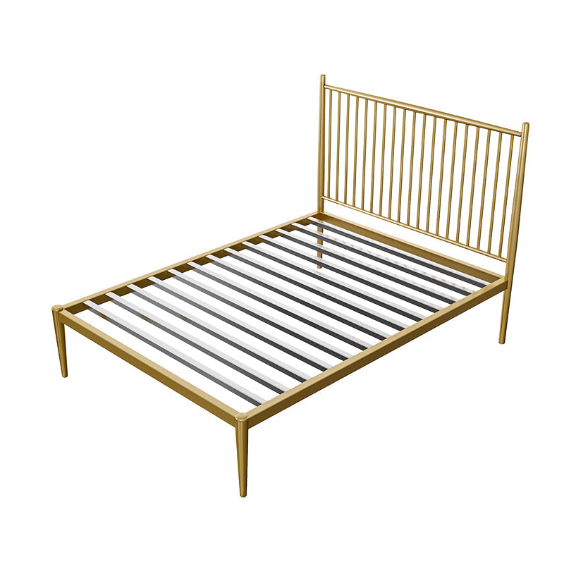 Letto a fila con telaio aperto in metallo contemporaneo con legno rettangolare con gambe metalliche
