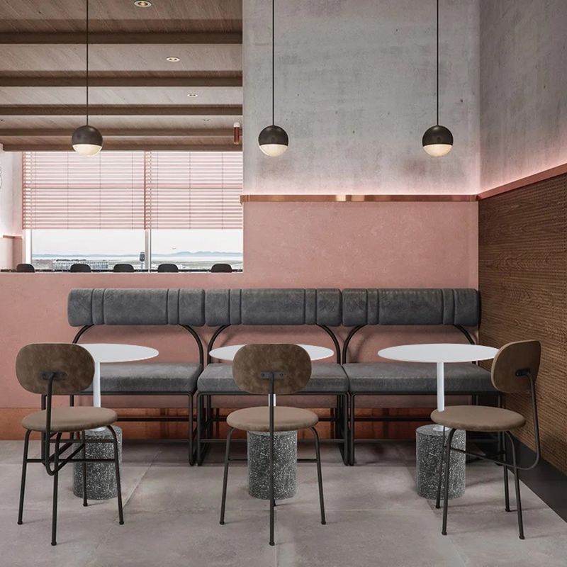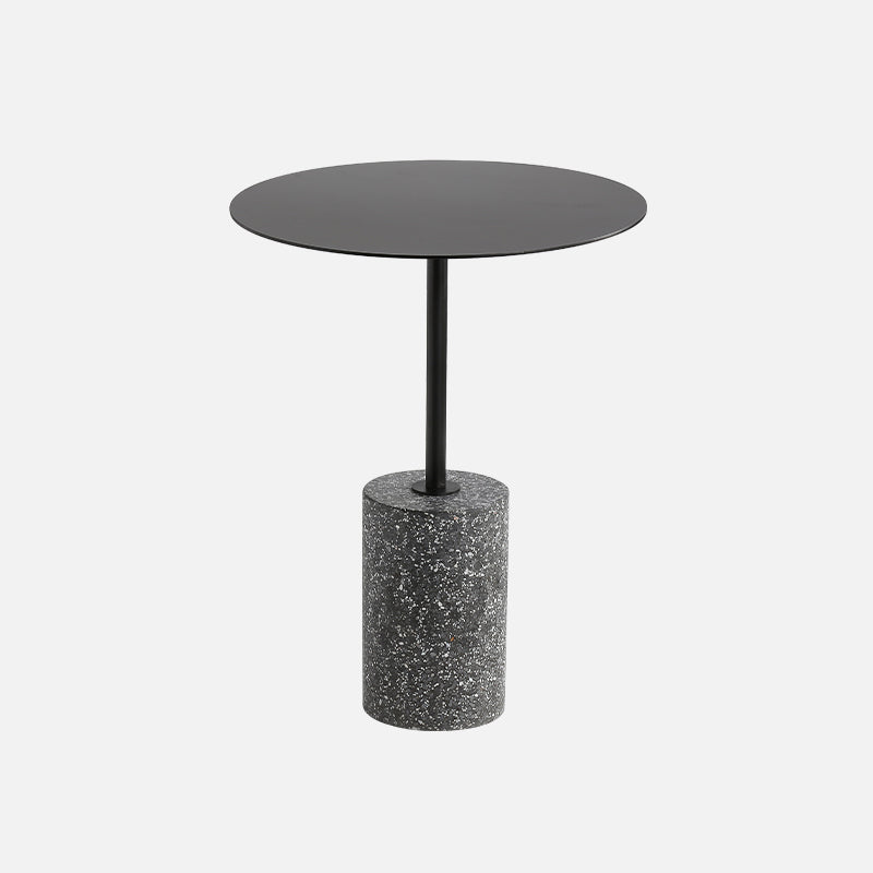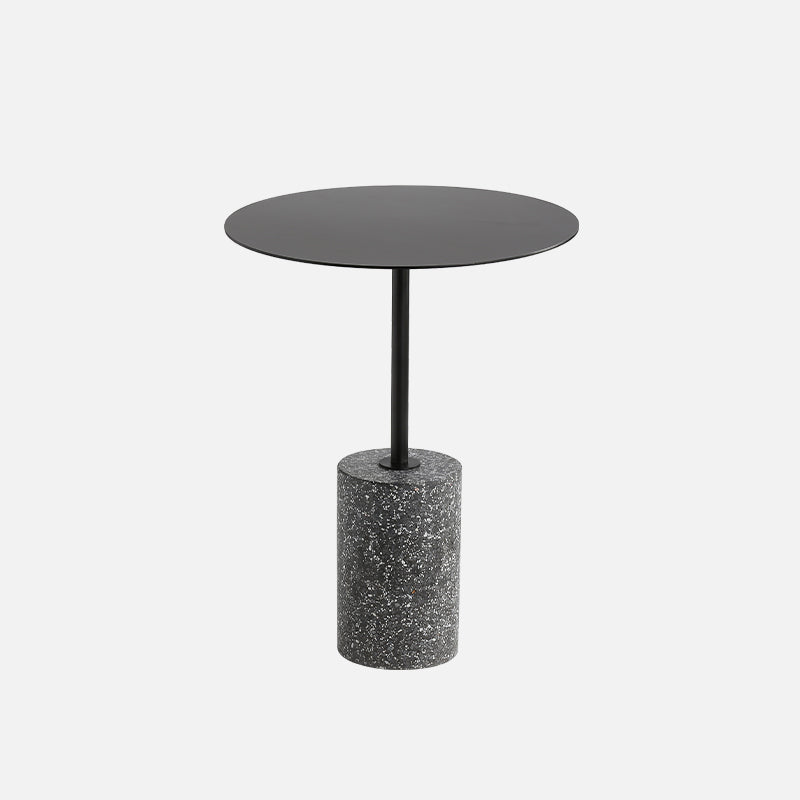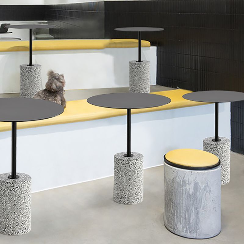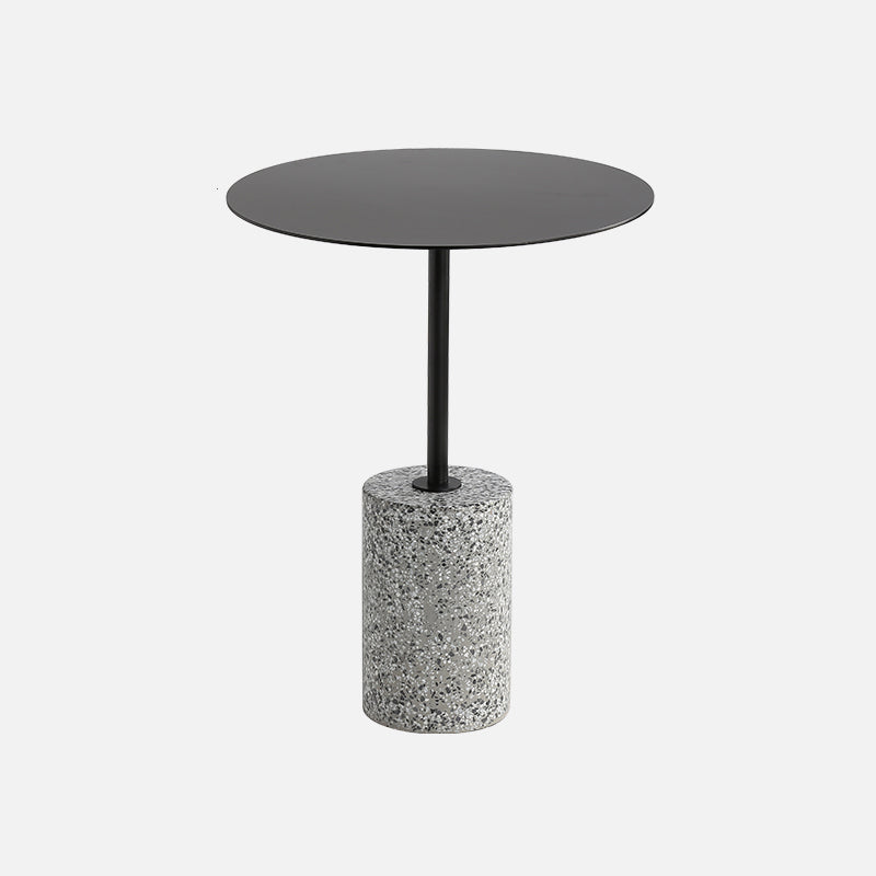 Tavolo contemporaneo di fascia laide rotonda con una singola base in terrazzo