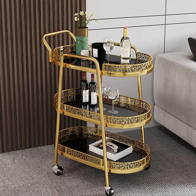 Tavolo da preparazione a vetro ovale contemporaneo 32.28 "H tavolo da preparazione a rotolamento per sala da pranzo
