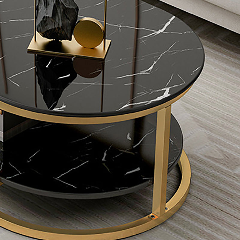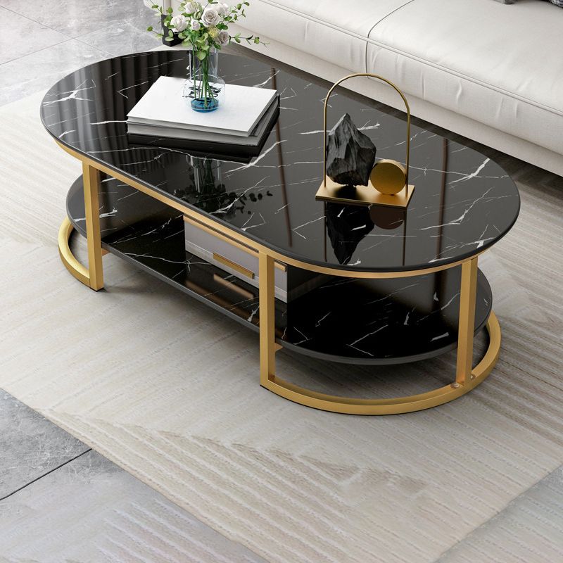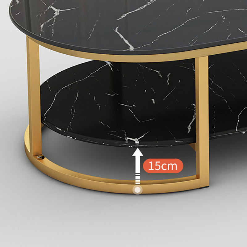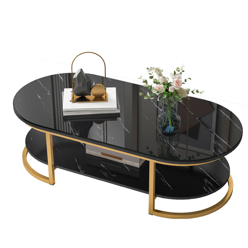 Tavolo da cocktail con vetro ovale contemporaneo con base dorata e scaffale