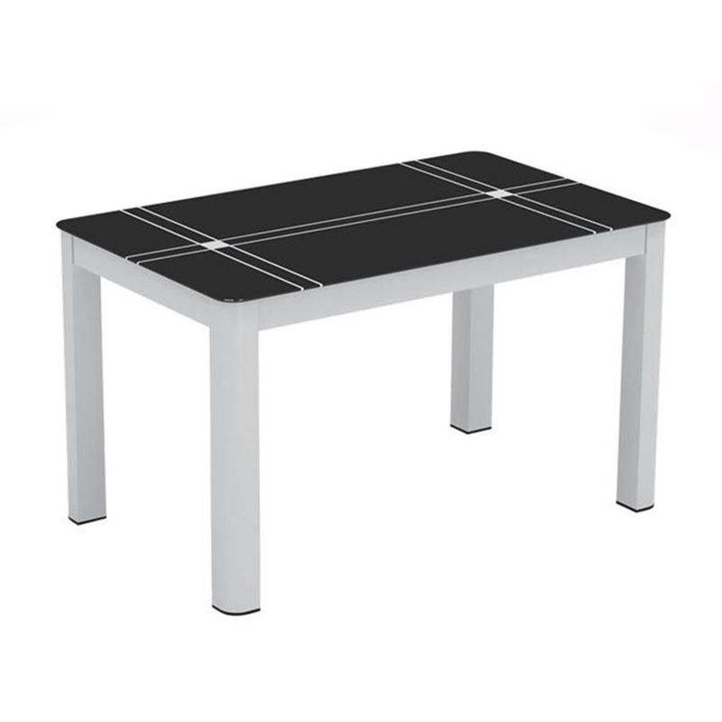 Tavolo da pranzo in vetro nero rettangolo contemporaneo con 4 piede in acciaio