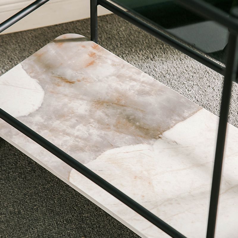 Tavolo di fascia alta in vetro rettangolare contemporaneo con scaffale ardesia