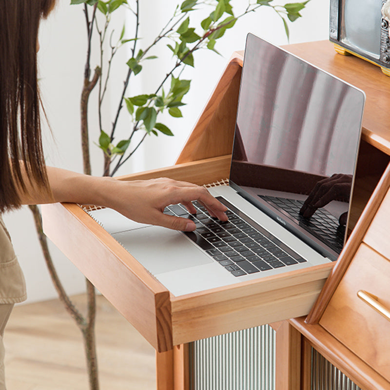 Armadio contemporaneo in legno in legno con porte di vetro