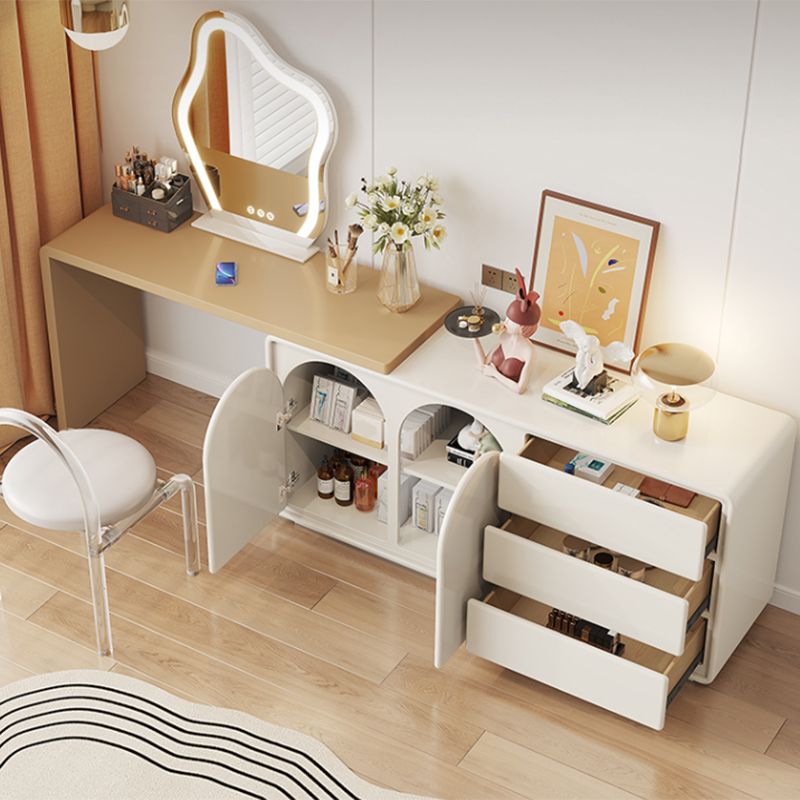 Bianco contemporaneo con tavolo da toeletta a specchio illuminato per camera da letto per cassetti