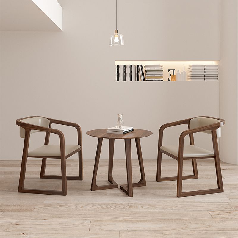 Tavolino a base di gambe incrociate in legno massiccio con cima rotonda