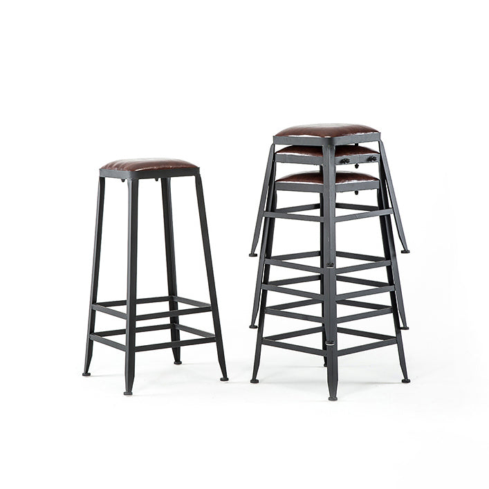 Sala da pranzo in pelle industriale in pelle da bar in ferro da bar 4 gambe sgabello con pedale