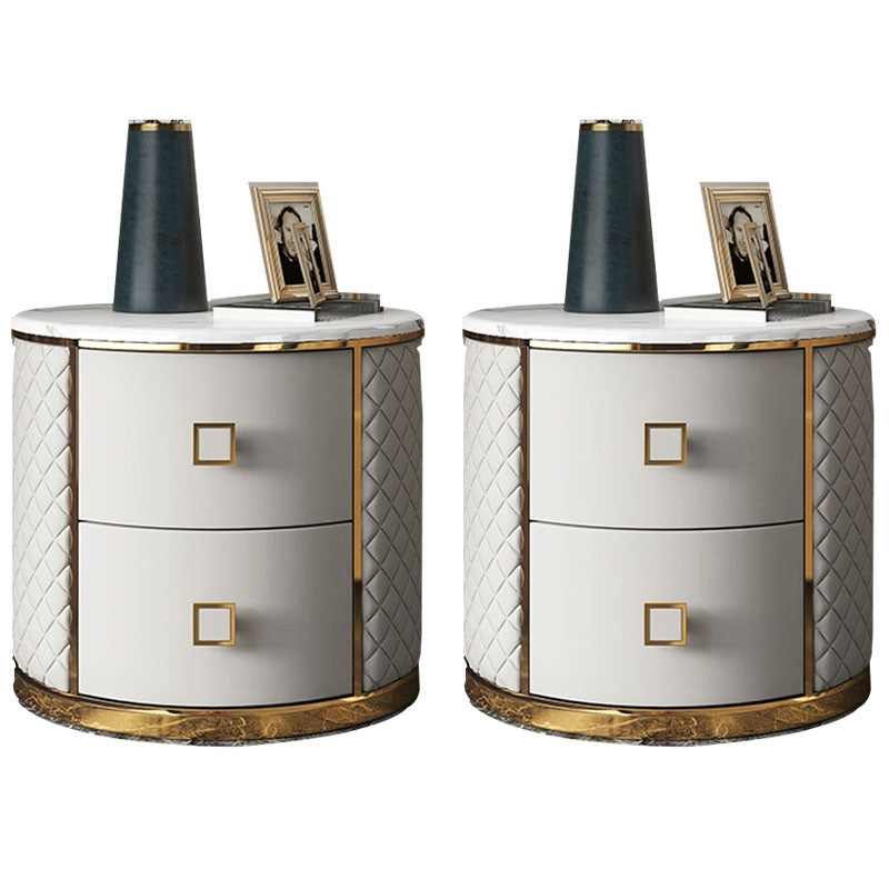 Comodino di archiviazione del cassetto 2 cassetto in pelle finta e glam da tavolo da notte in marmo autentico