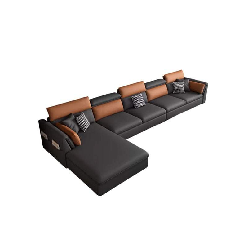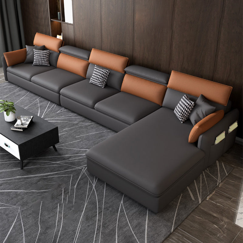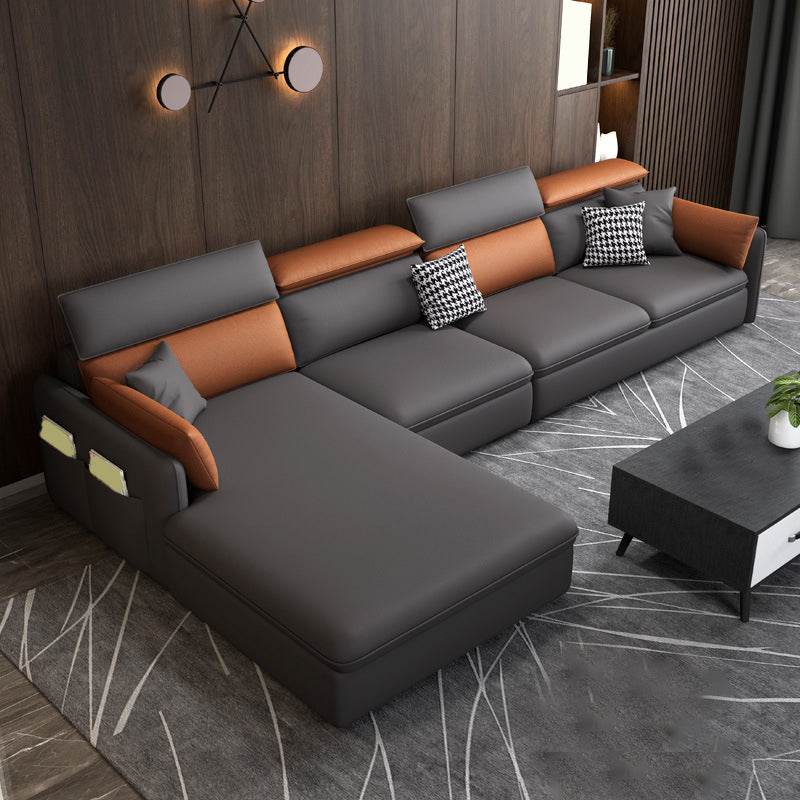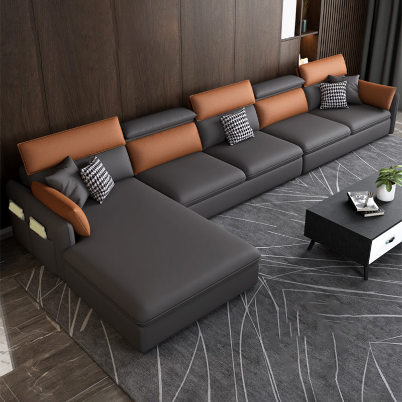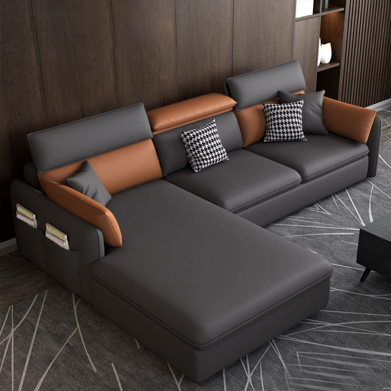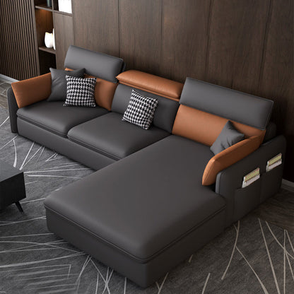Fronte di cuscinetto in pelle posteriore sezionale con spazio per soggiorno