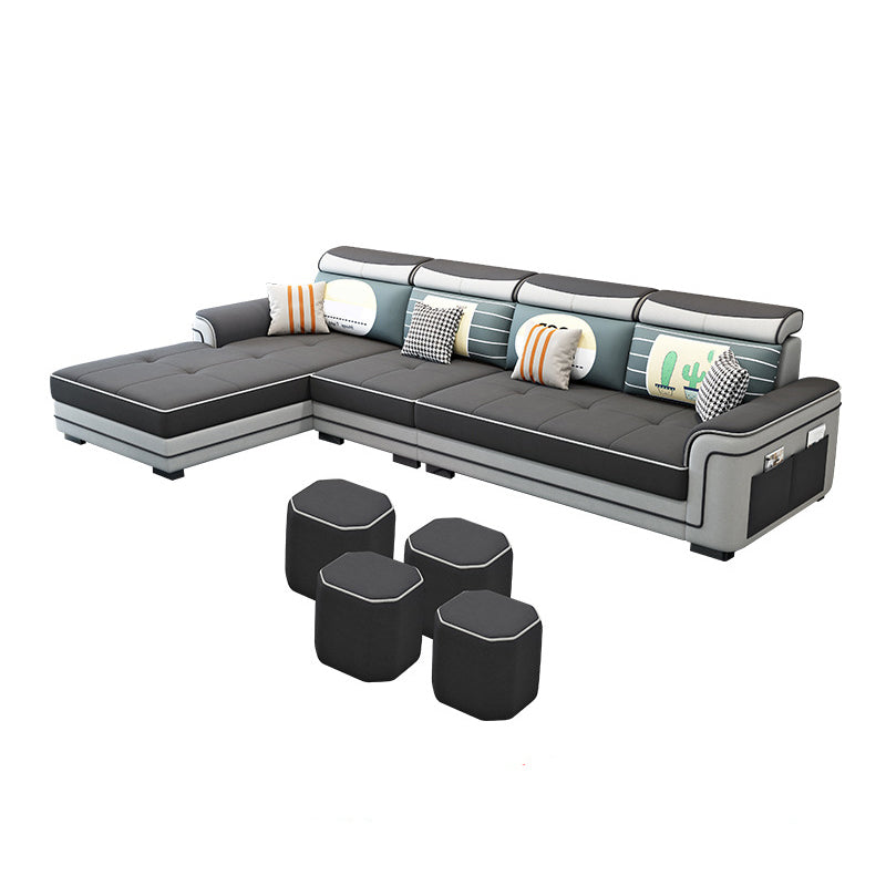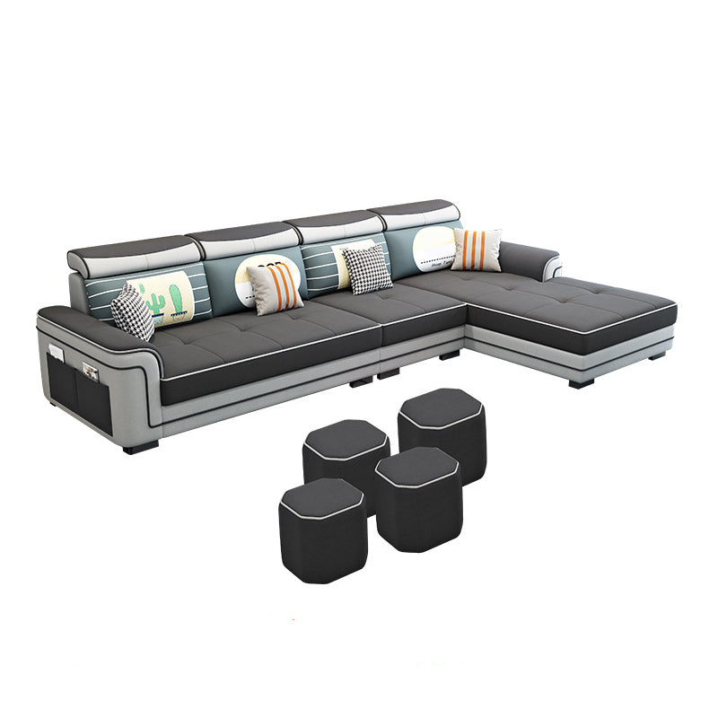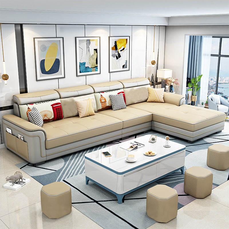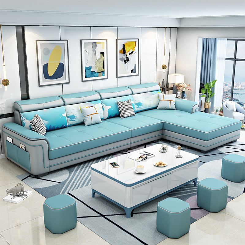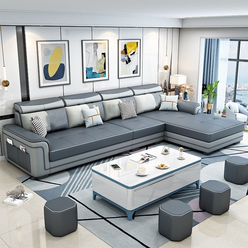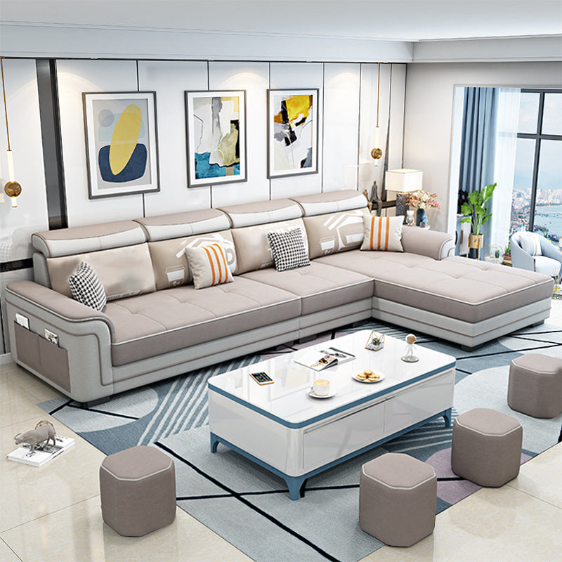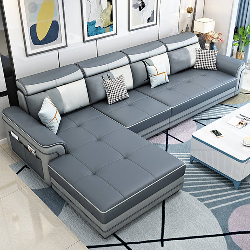 Faux Leather/Fabric Mid Century Modern Sofa & Chaise Pillow Top Arm Sofa Clearhalo 'furn' 'furn_sectionals' 'Furniture' 'Living Room Furniture' 'Sectionals' 1200x1200_e064f27d-b514-4e21-b31e-7224d865d528