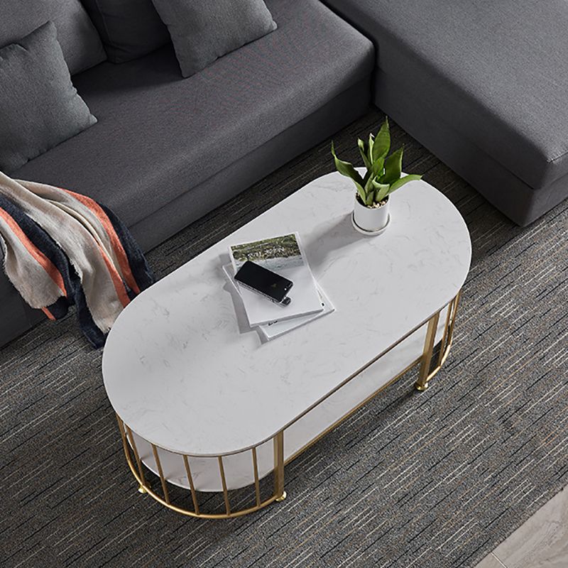 Tavolo da cocktail di caffè in marmo glam con top ovale e base di ferro