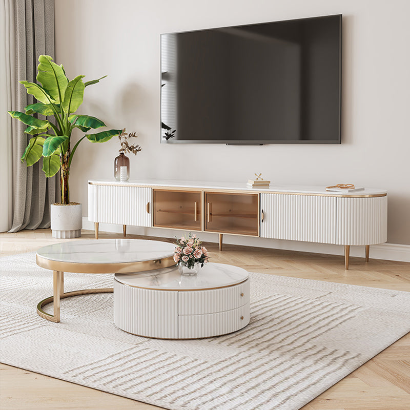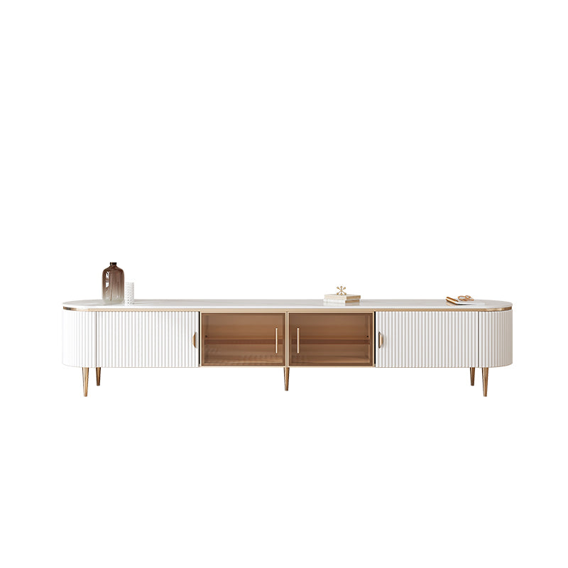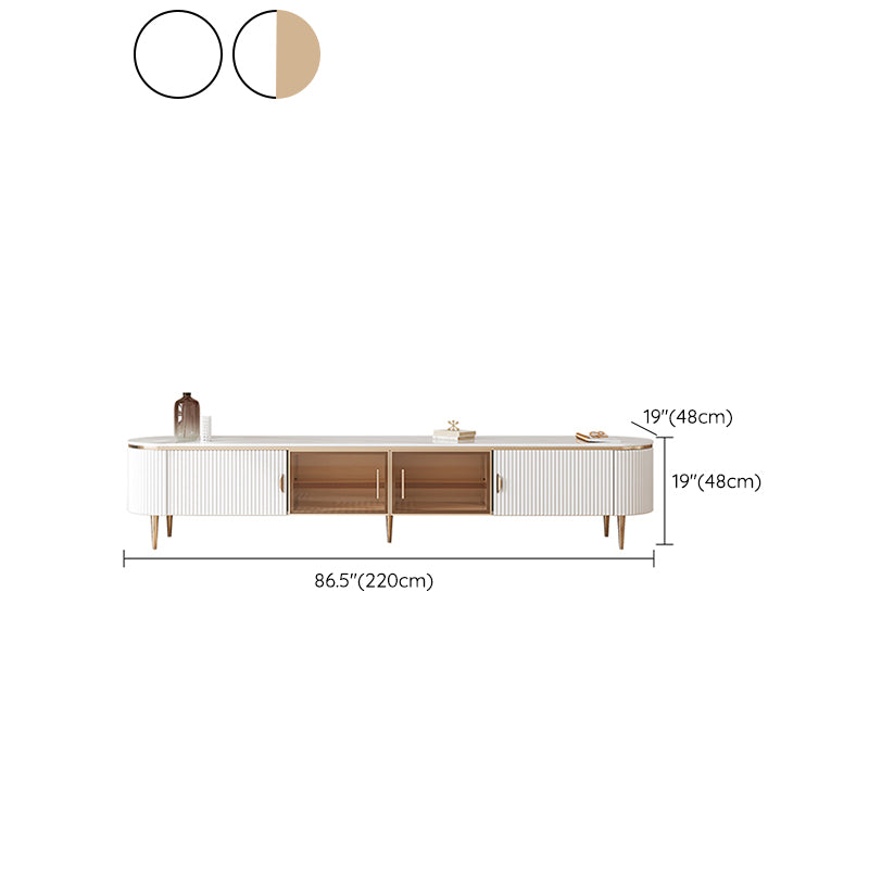 Console glam oval white tv stand con ripiani per soggiorno
