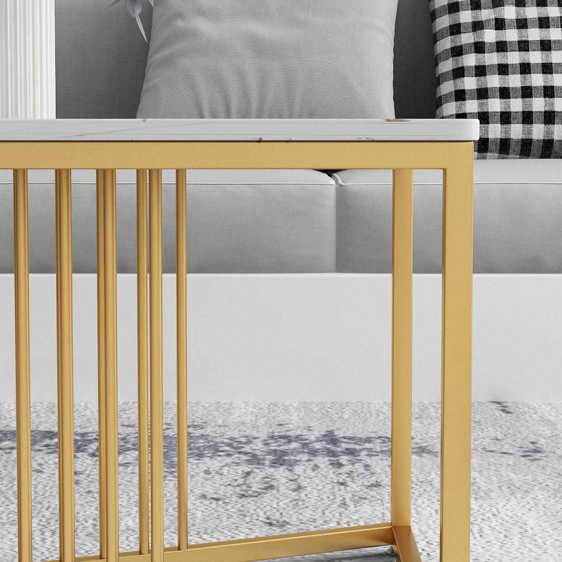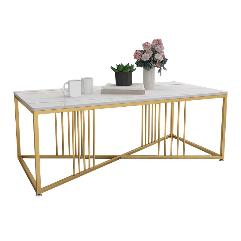 Tavolo da cocktail glam in pietra con base a croce di ferro dorato nel rettangolo