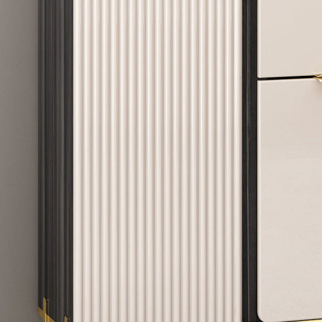 Scheda di vetro in pietra in pietra in stile glam con armadi e cassetti