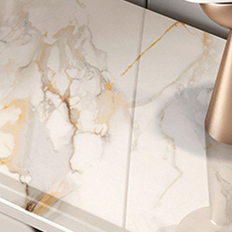 Scheda laterale in pietra a buffet da pranzo in stile glam con armadi e cassetti