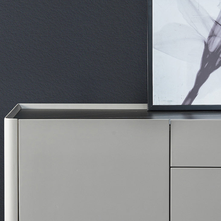 Server da pranzo in pietra grigia e buffet in legno con cassetti