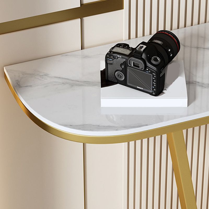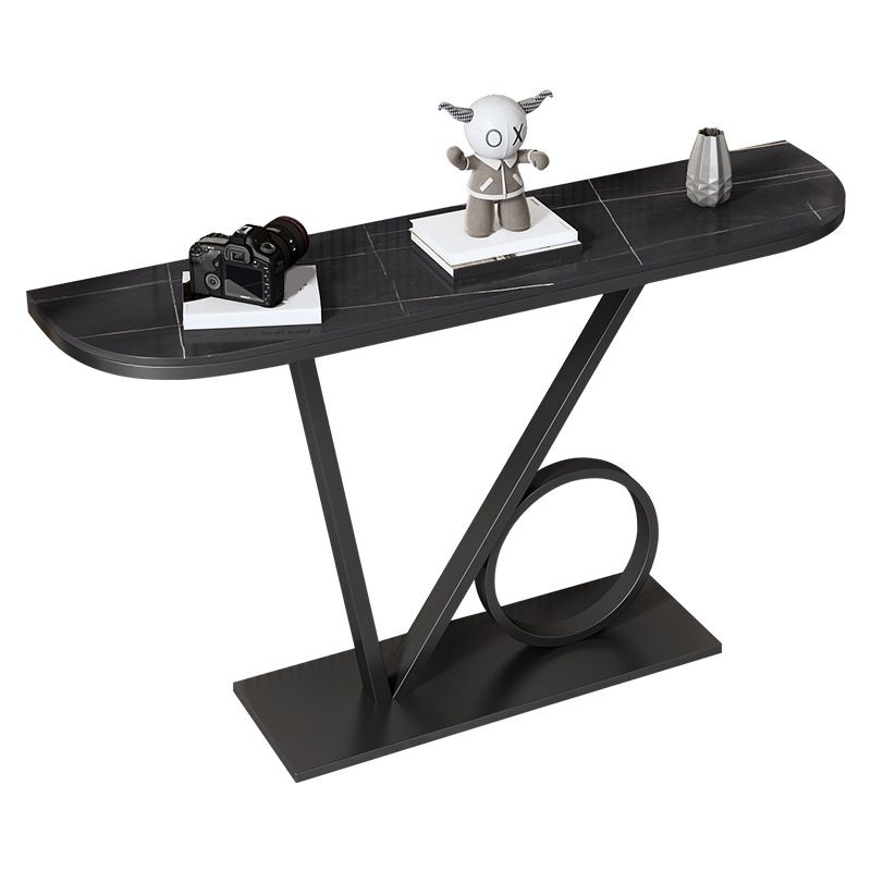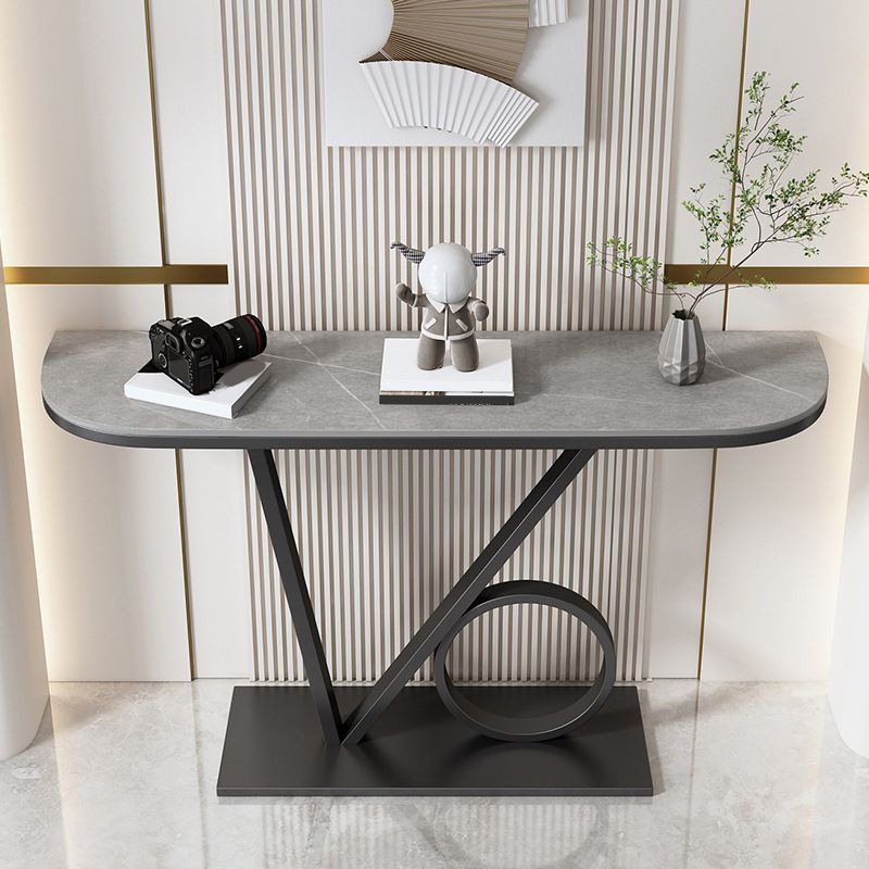 Tavolino con console superiore in pietra mezzaluna con tavolo di accento di base del piedistallo di ferro