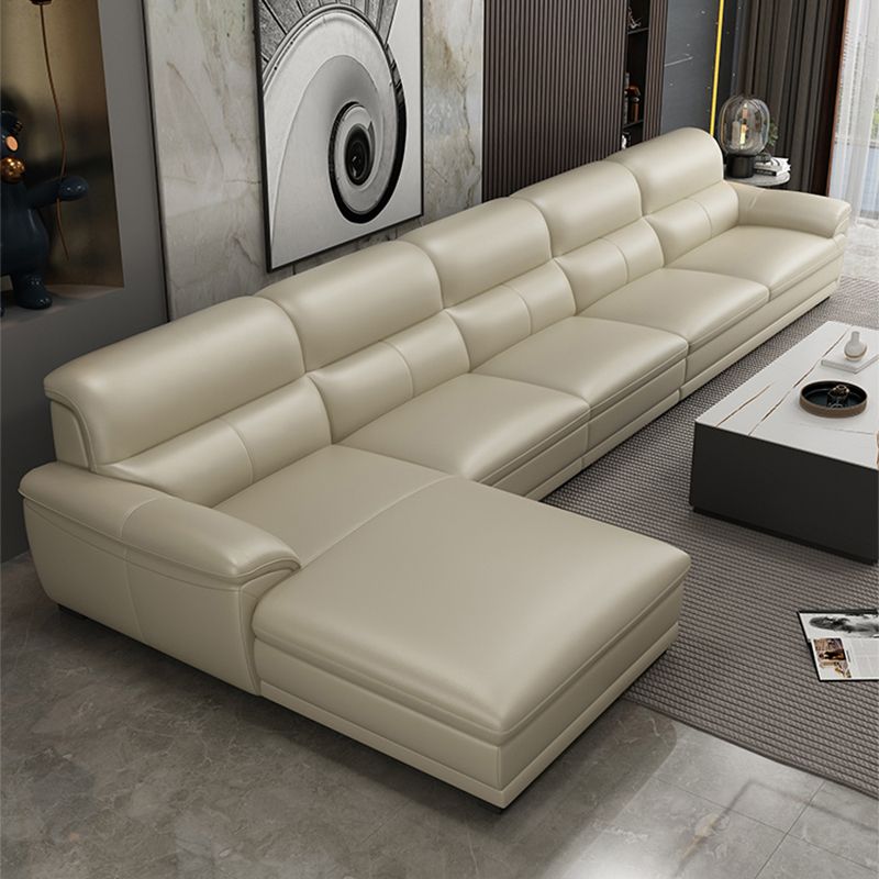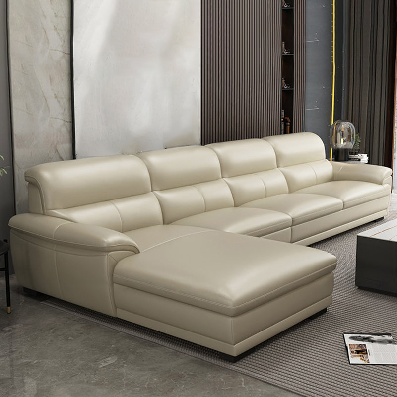 Leather Pillow Top Arm Sectional Sofa 36.22"High Cushion Back Sofa,Beige Clearhalo 'furn' 'furn_sectionals' 'Furniture' 'Living Room Furniture' 'Sectionals' 1200x1200_9806c6ce-281c-45a1-a802-623c0eeaedf5