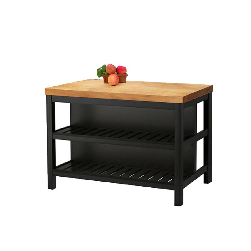 Tavolo da cucina in legno massiccio marrone chiaro con deposito aperto in metallo