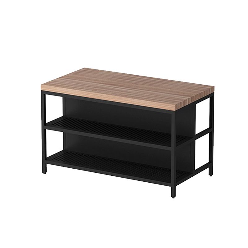 Light Wood Finish Kitchen Island Table with Metal Open Storage Clearhalo 'furn' 'furn_kitchen_islands_carts' 'Furniture' 'Kitchen & Dining Furniture' 'Kitchen Islands & Carts' 'kitchen_islands_carts' 7661085