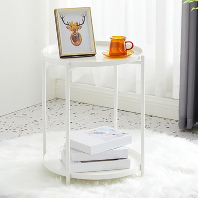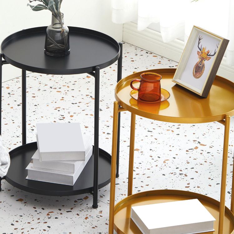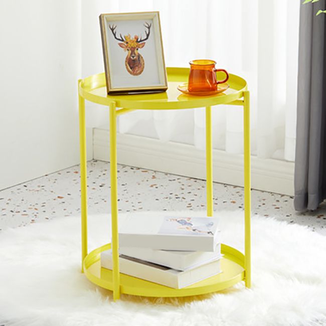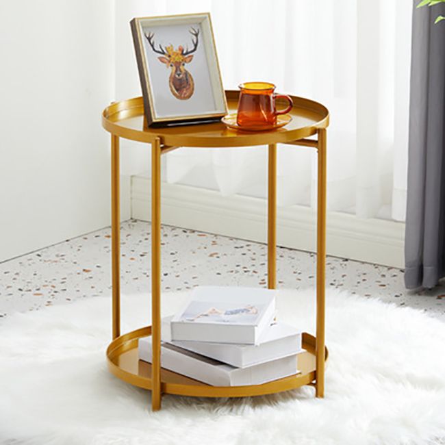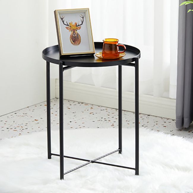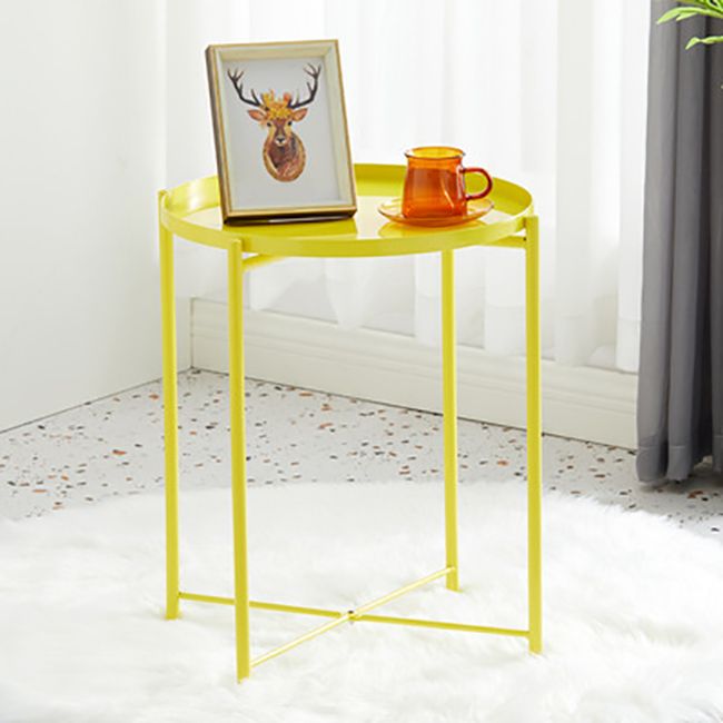 Tavolino rotondo in metallo della metà del secolo gambe trasversali diagnostruiti da 17,72 "