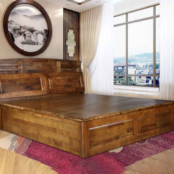 Letto a letto standard in legno massiccio della metà secolo con testiera