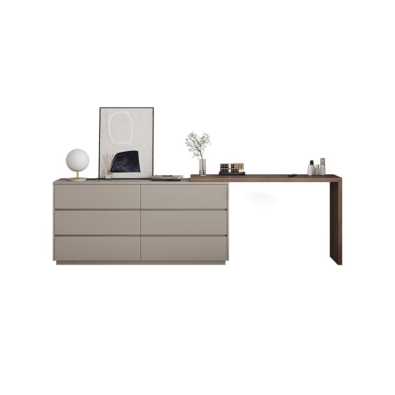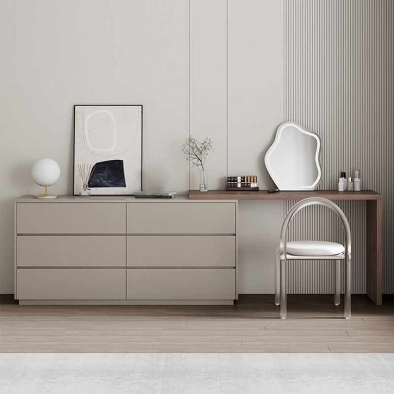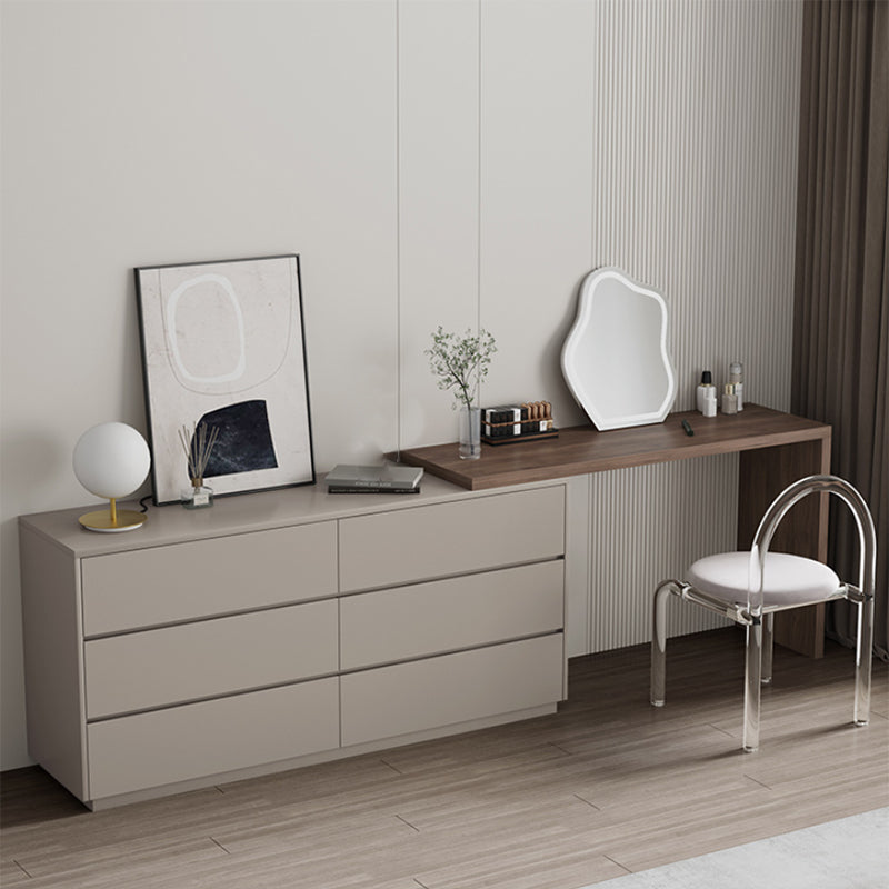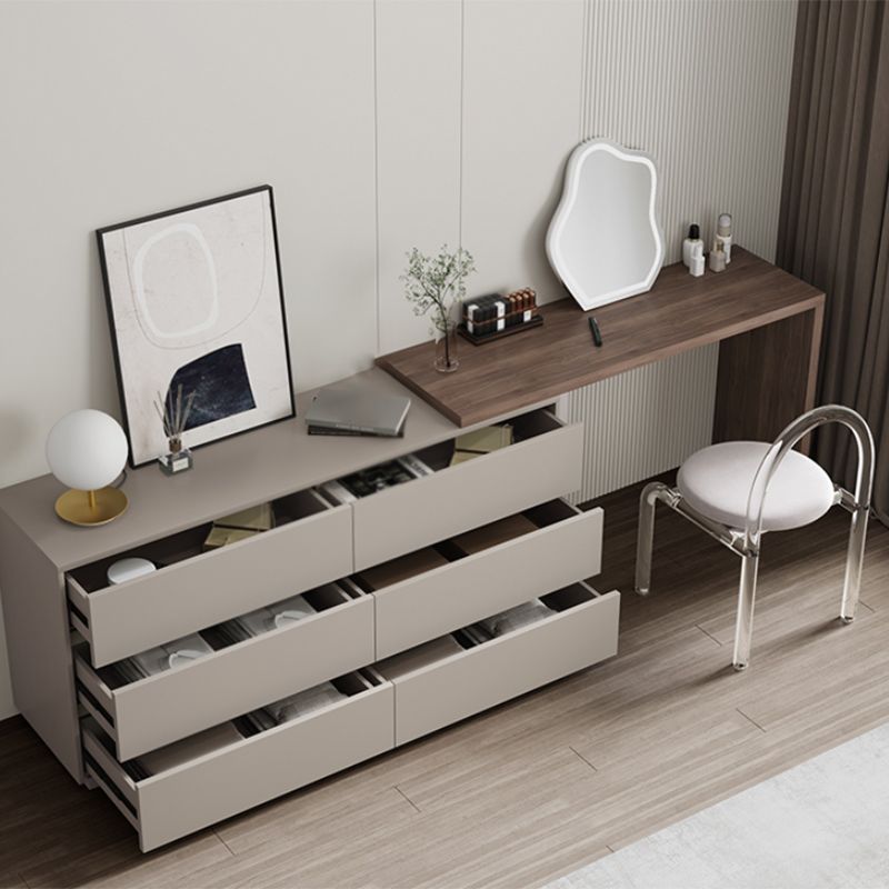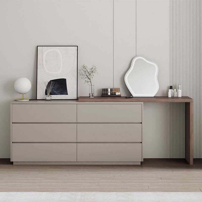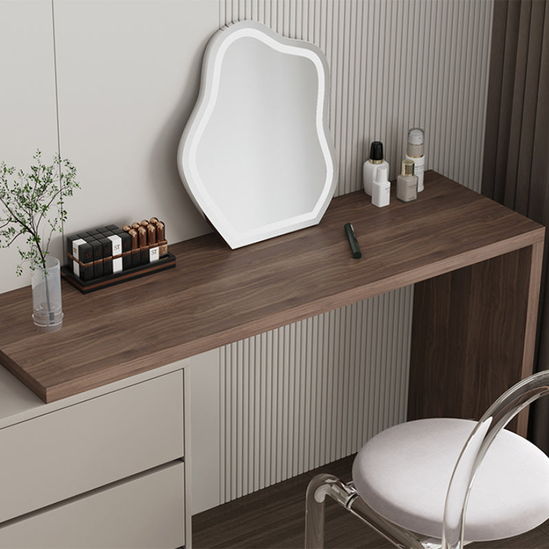 Camera da letto in legno massiccio marrone moderno in piedi con vanità per il trucco del cassetto