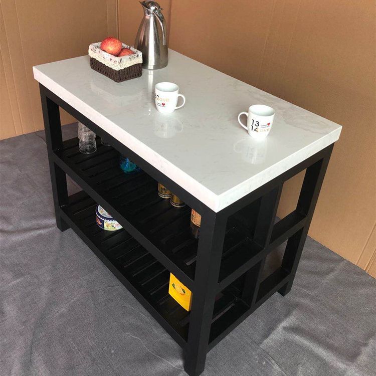 Moderno sala da pranzo cucina isola tavolo di preparazione in marmo con scaffale