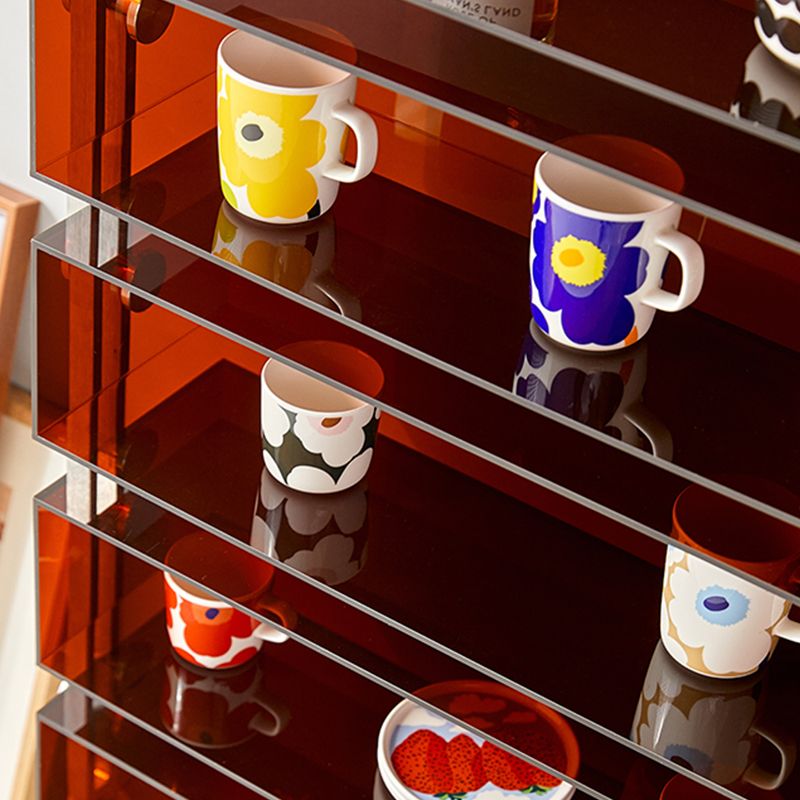 Display soggiorno moderno stand Acrilico Open Open Carice con gambe in acciaio inossidabile