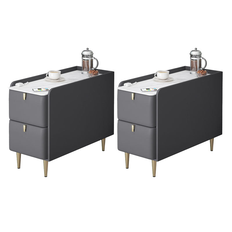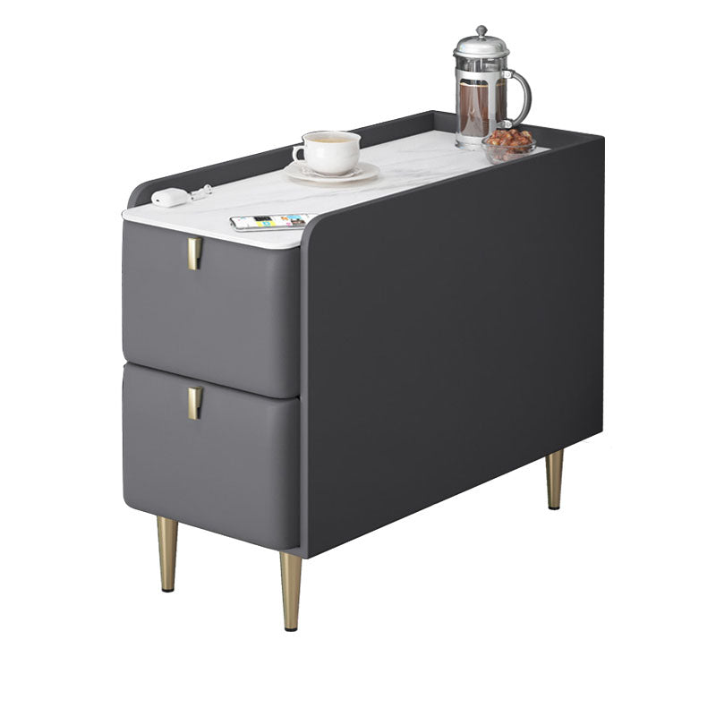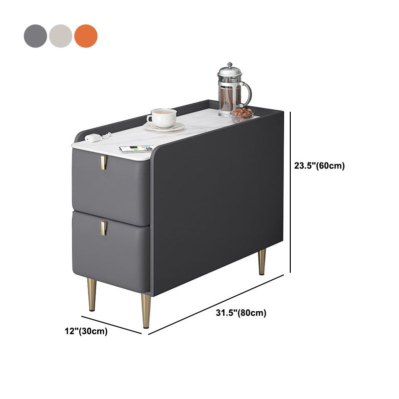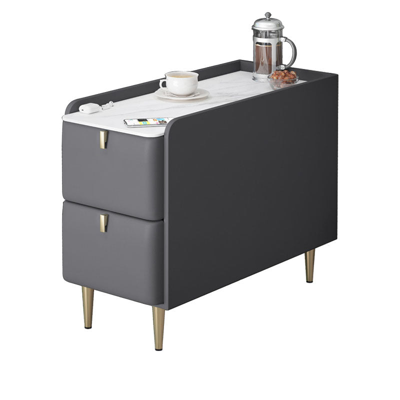 Tavola del lato superiore in ardesia rettangolare moderna 23.6 "Fine 4 gambe in metallo alto 4 gambe con 2 cassetti