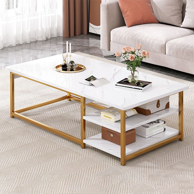 Tavolo da cocktail di caffè rettangolare moderno con scaffali di stoccaggio