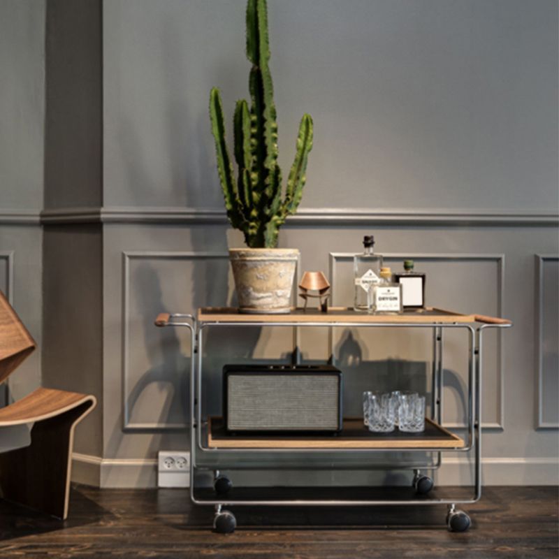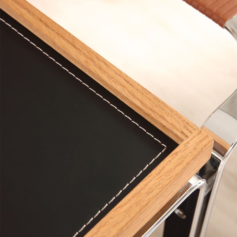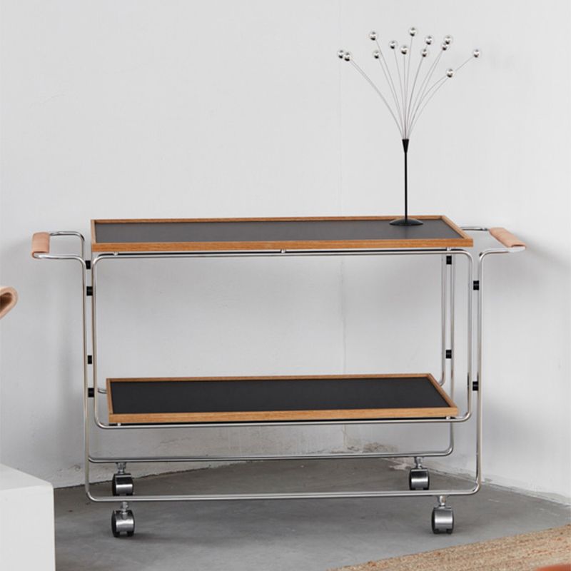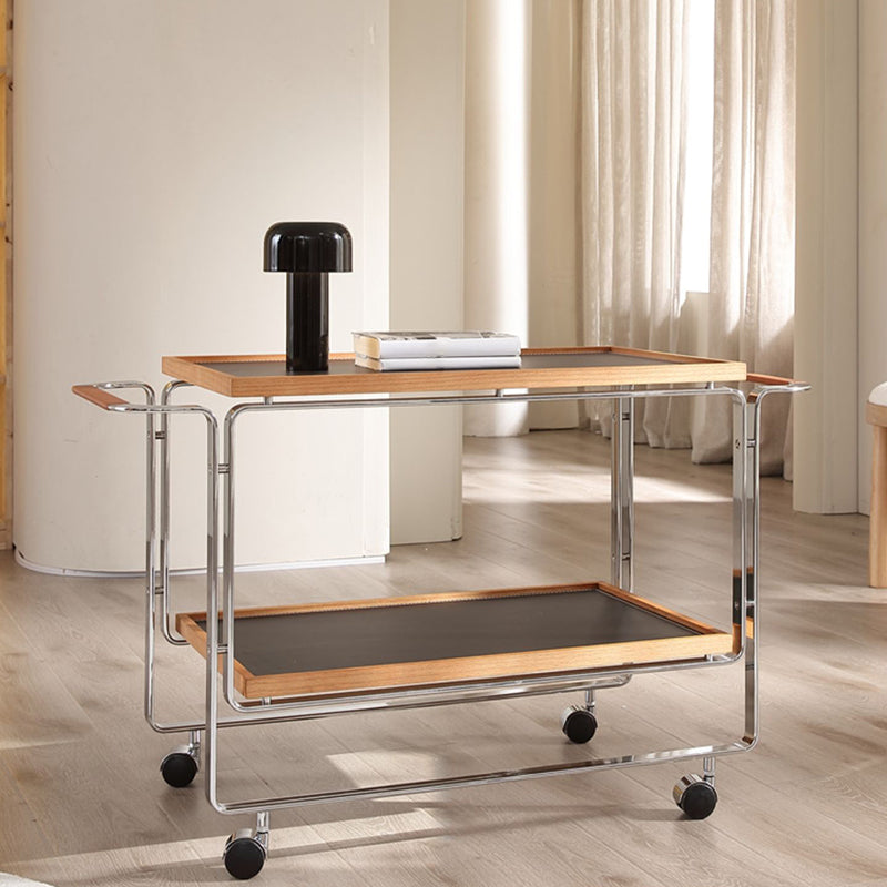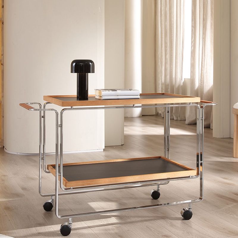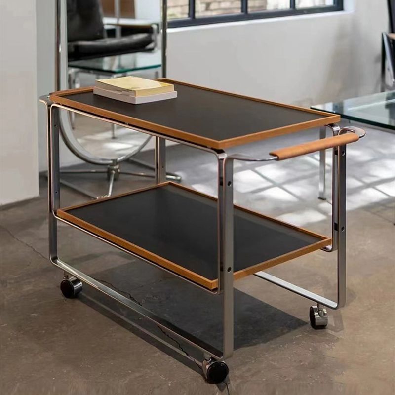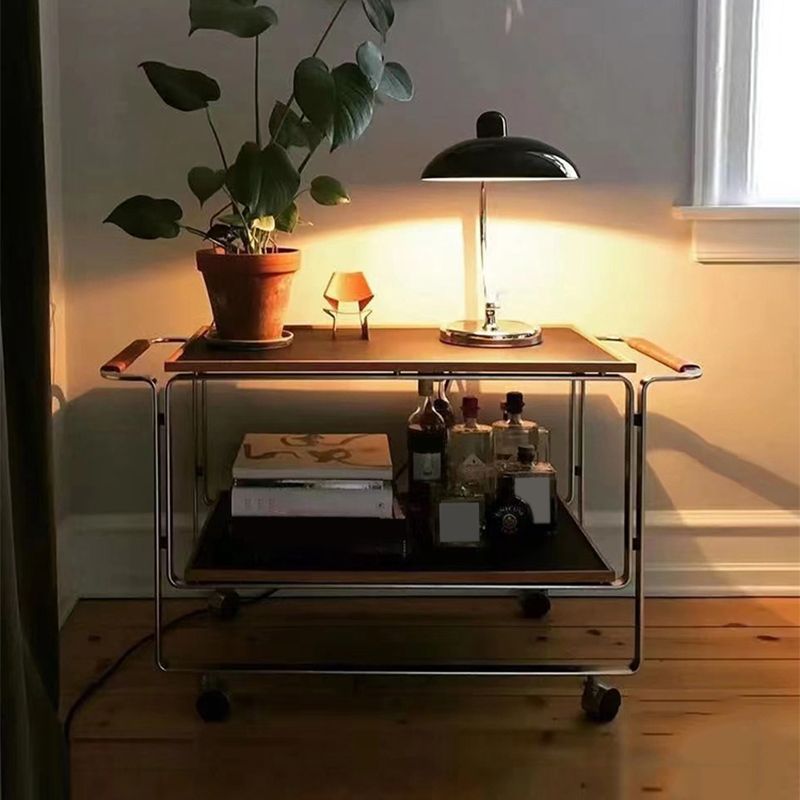 Tavolo di accento lato divano moderno in acciaio e legno massiccio con scaffale