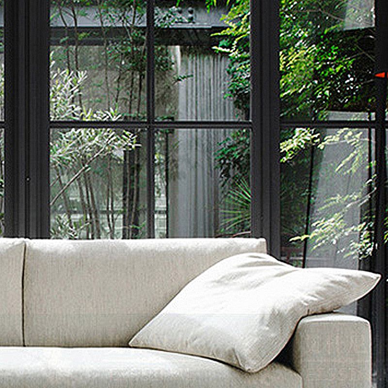 Divano a braccio quadrato moderno con cuscini in bianco per soggiorno