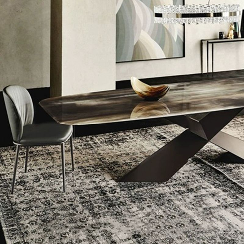 Sedia da pranzo in metallo in stile moderno in vetro sedia da pranzo senza braccio in pelle per uso domestico