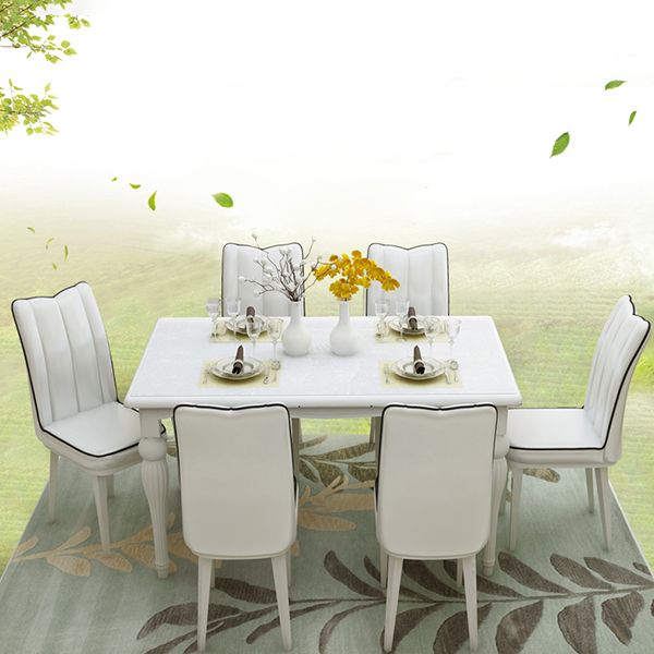 Moderno tavolo da pranzo in vetro rettangolare bianco con gambe in legno massiccio