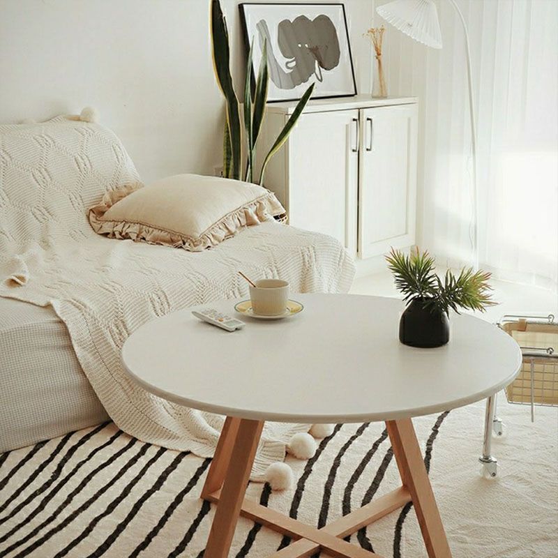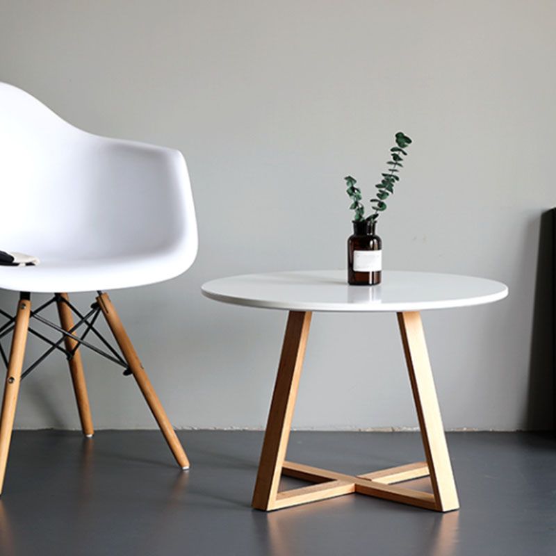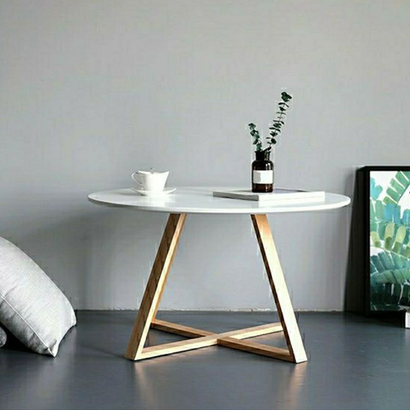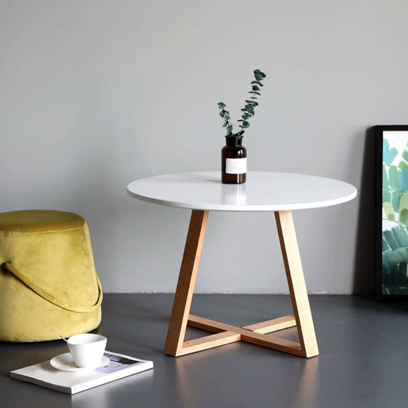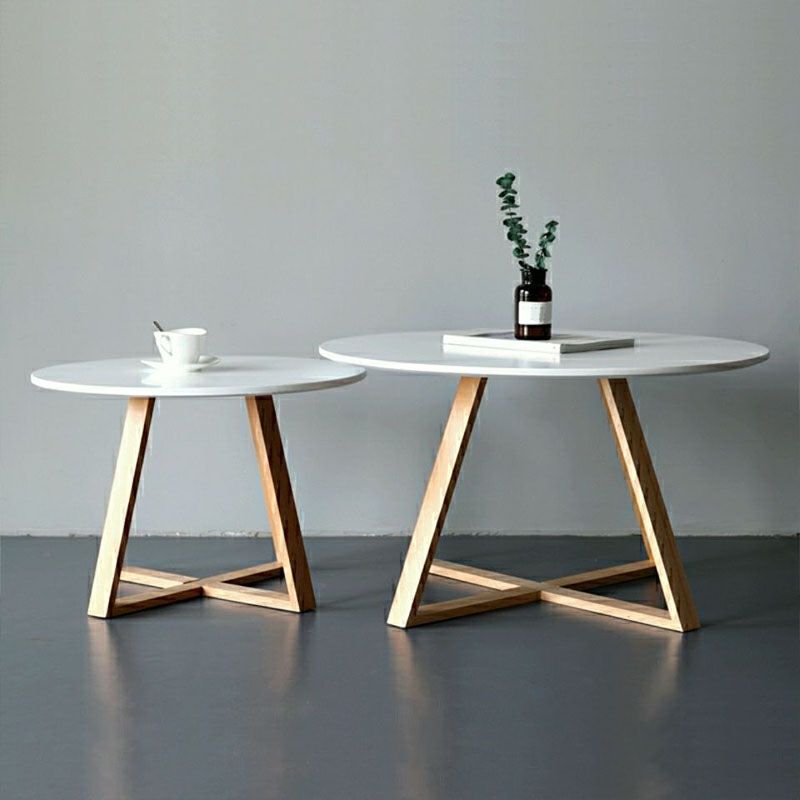 Tavolo in legno solido rotondo in stile nordico con tavola laterale incrociata in legno