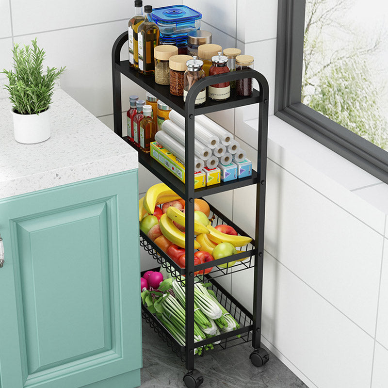 Tavolo di preparazione di stoccaggio aperto con carrello da cucina a basket in nero