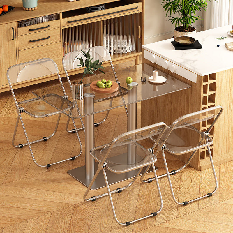 Finitura lucidata 1/4/5 PC set da pranzo con tavolo da pranzo in vetro e sedie pieghevoli