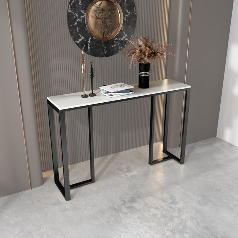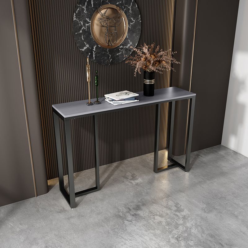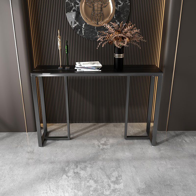 Tavolo accento superiore in pietra rettangolare con base ironica nera per Hall