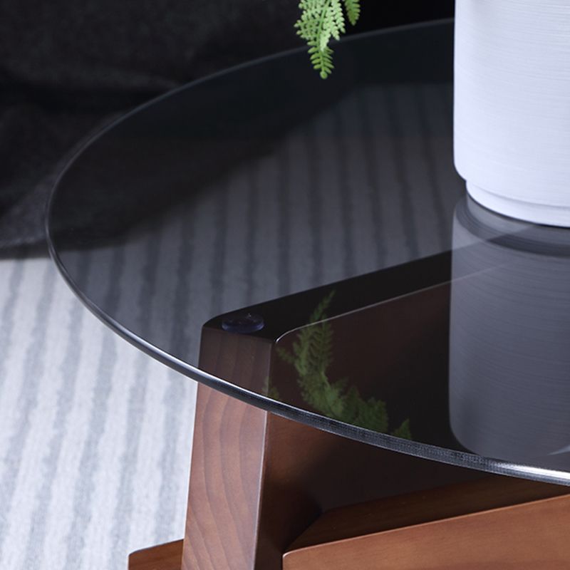 Tavolo da cocktail tondo in vetro con base in legno massiccio