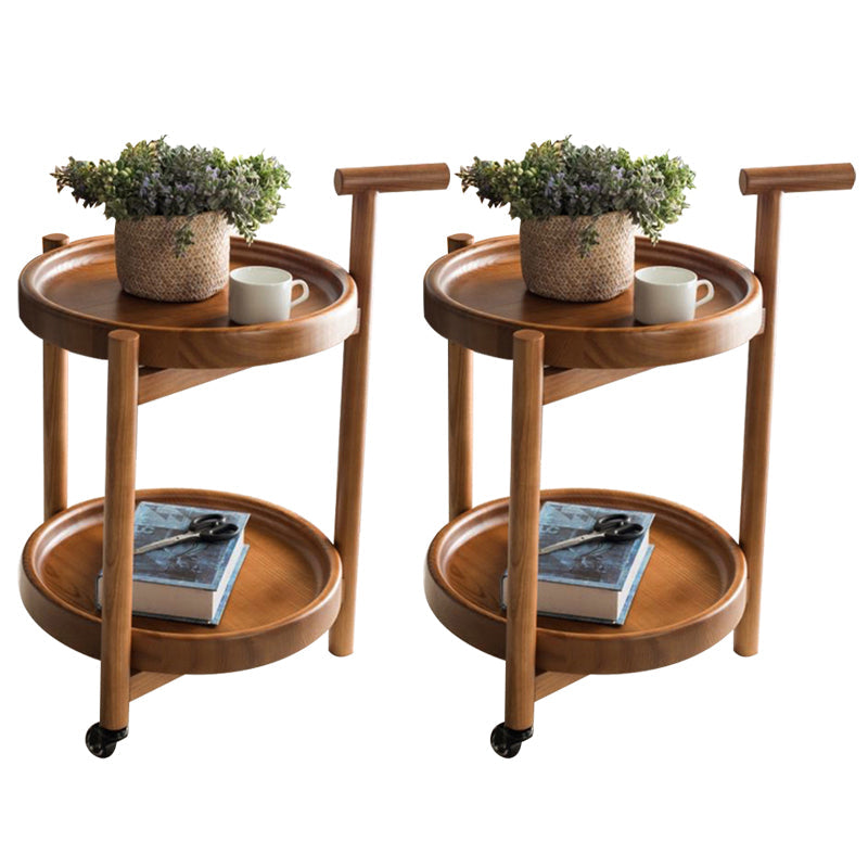 Tavolino in legno del vassoio rotondo scandinavo da 21,6 pollici con scaffale e ruota