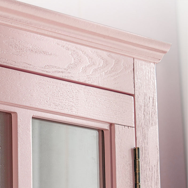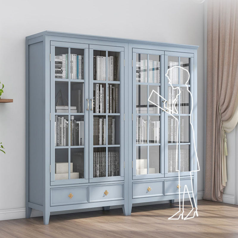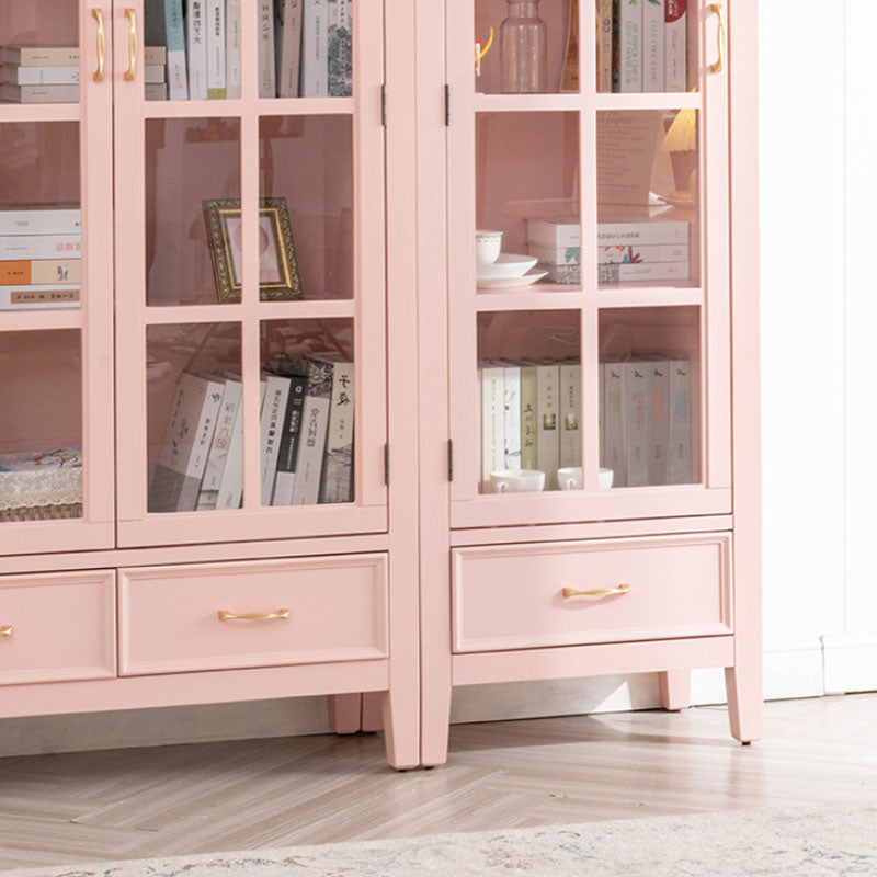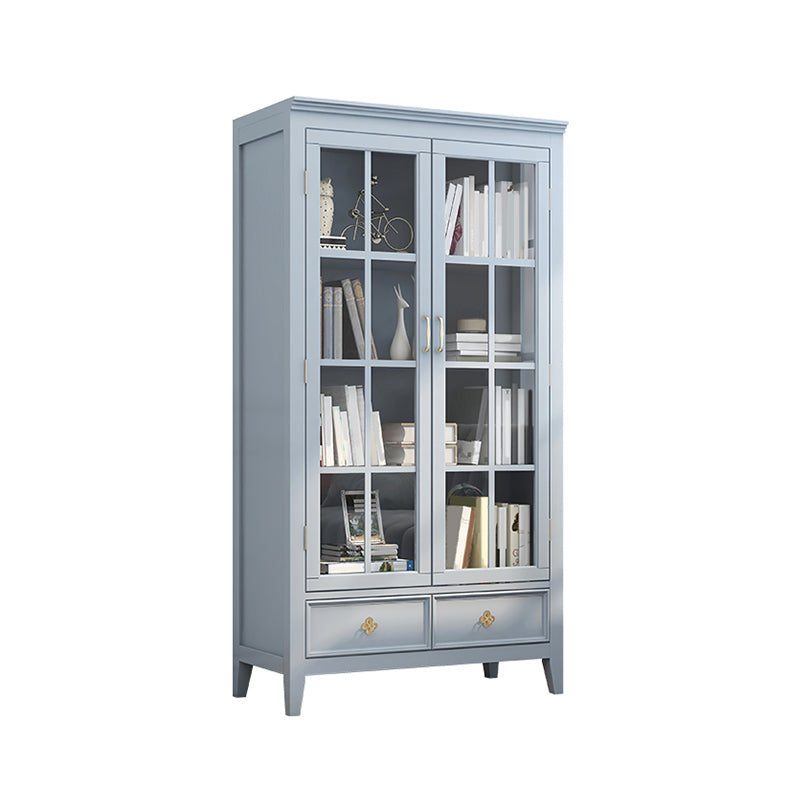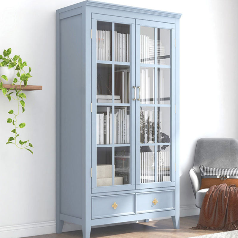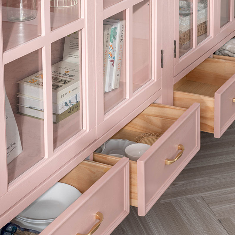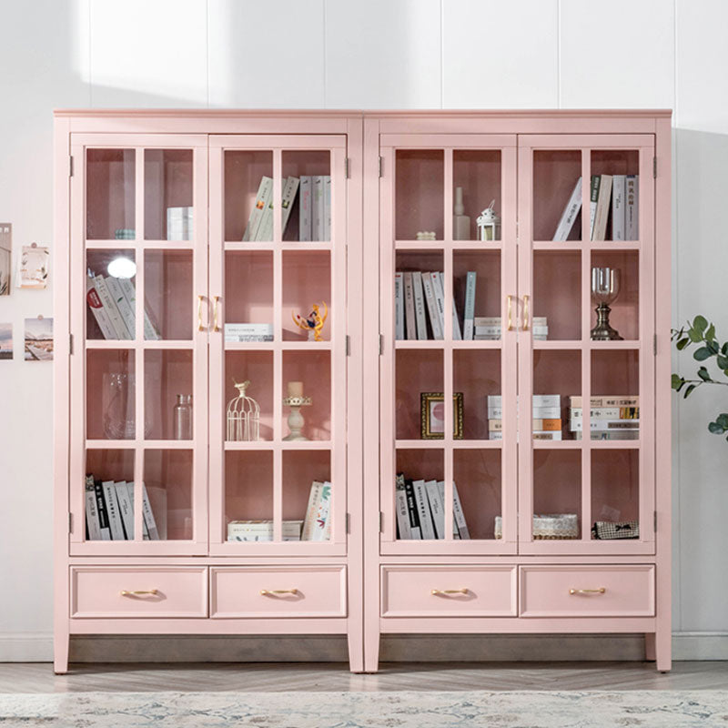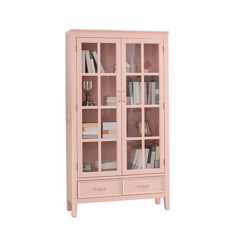 Armadietto di vetro per vetri scandinavi in ​​legno di gomma con 2 cassetti