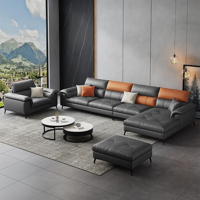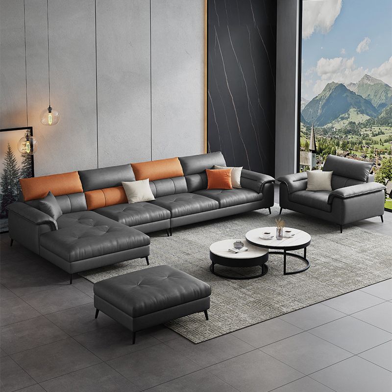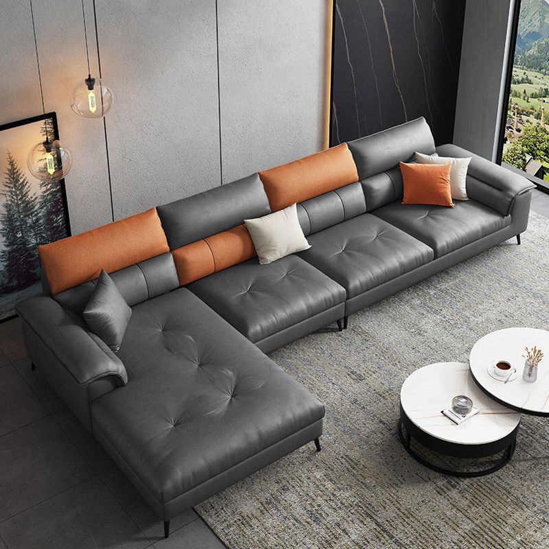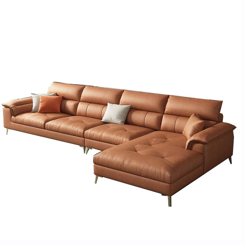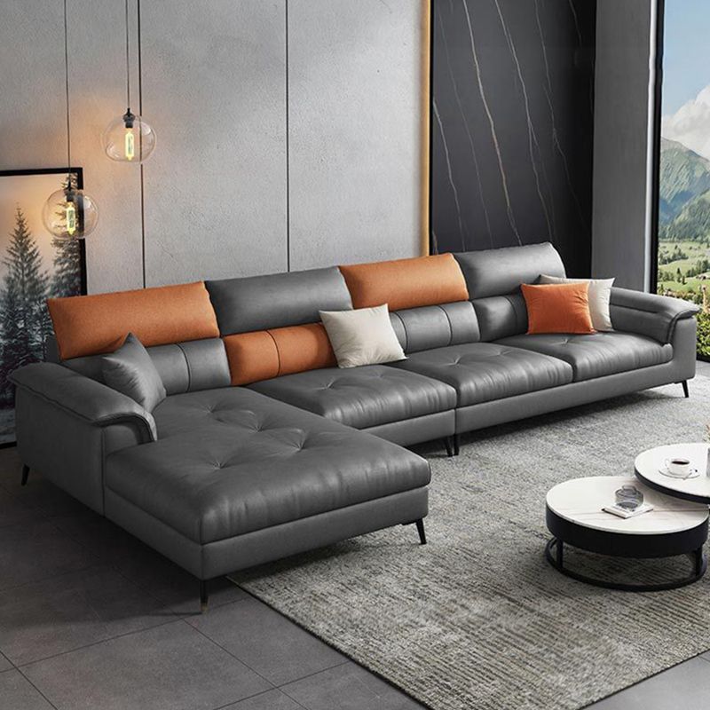 Divano posteriore del cuscino cucito e chaise 137,8 "w x 70,87" d x 35.43 "h divano in pelle finta
