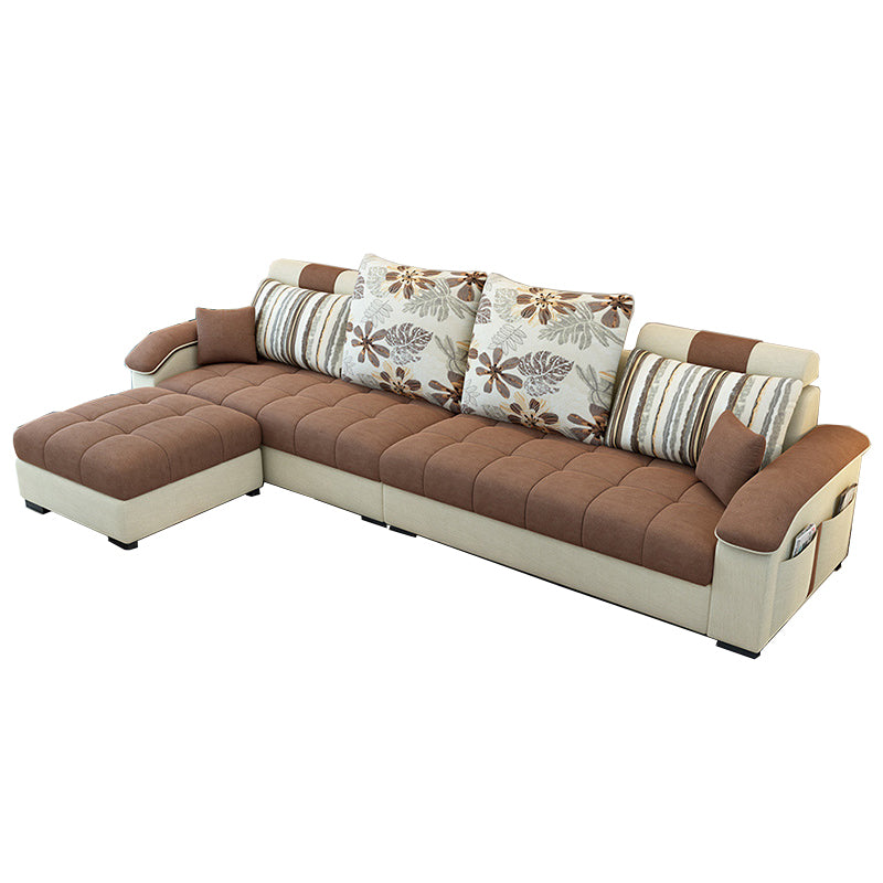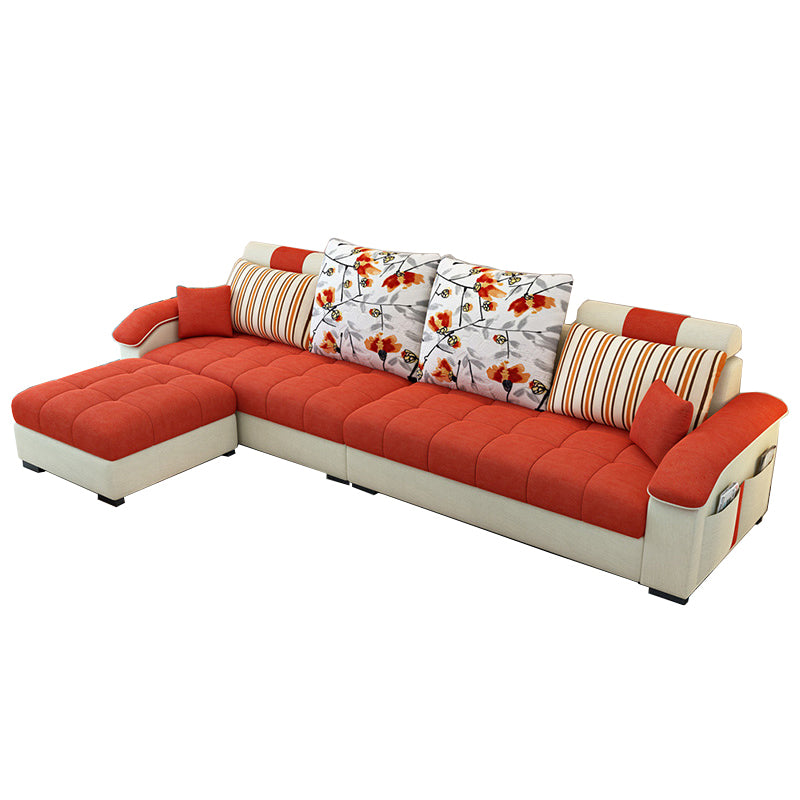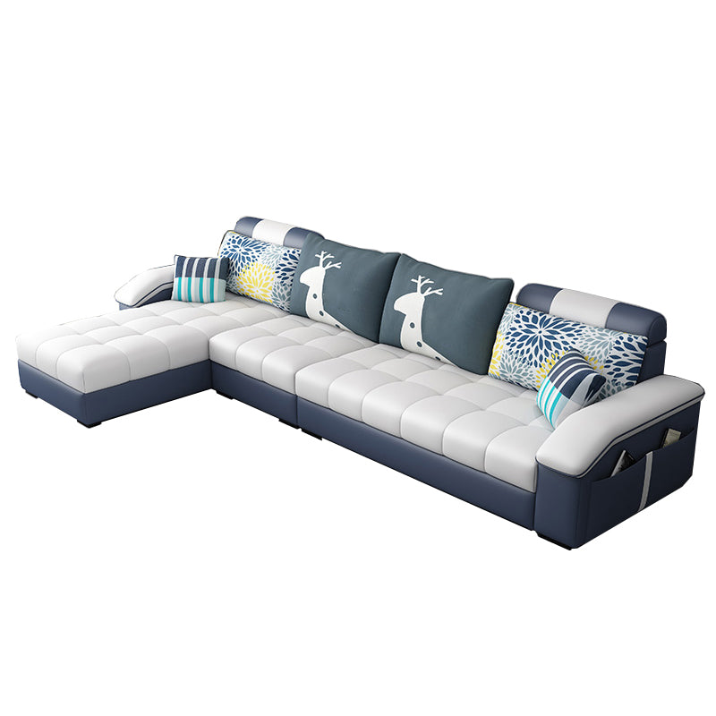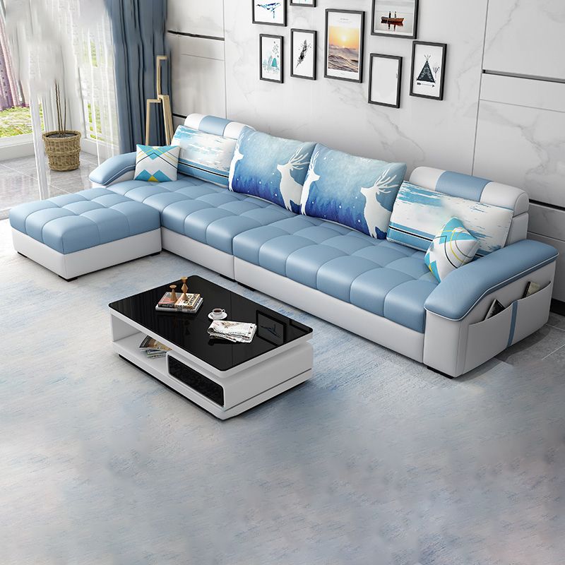Braccia inclinata in vetro in pelle e miscela di cotone sezionali per quattro persone