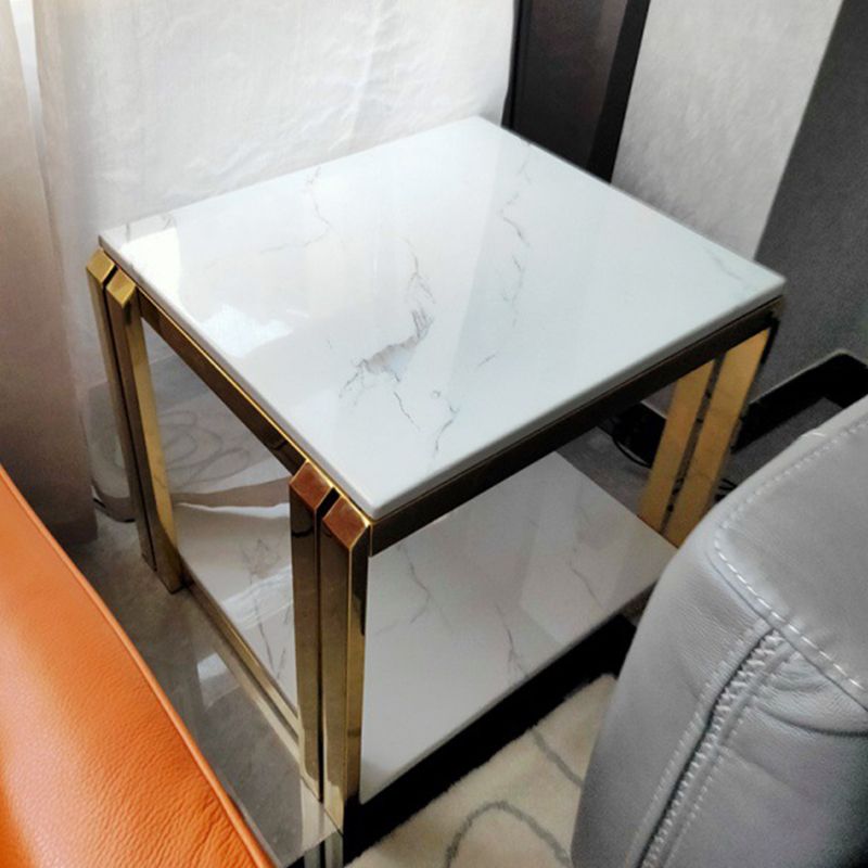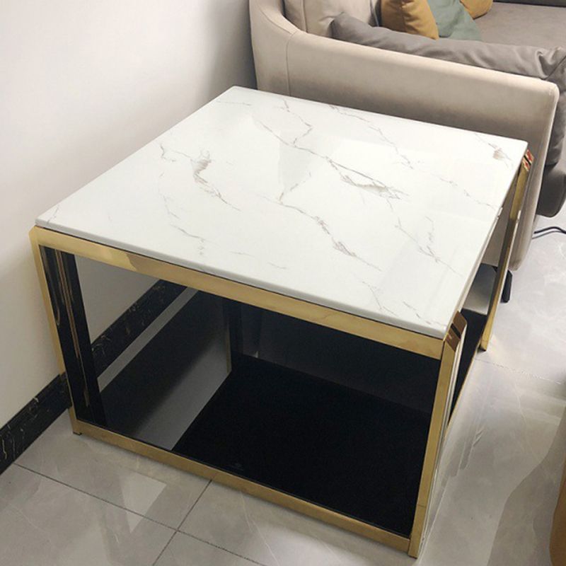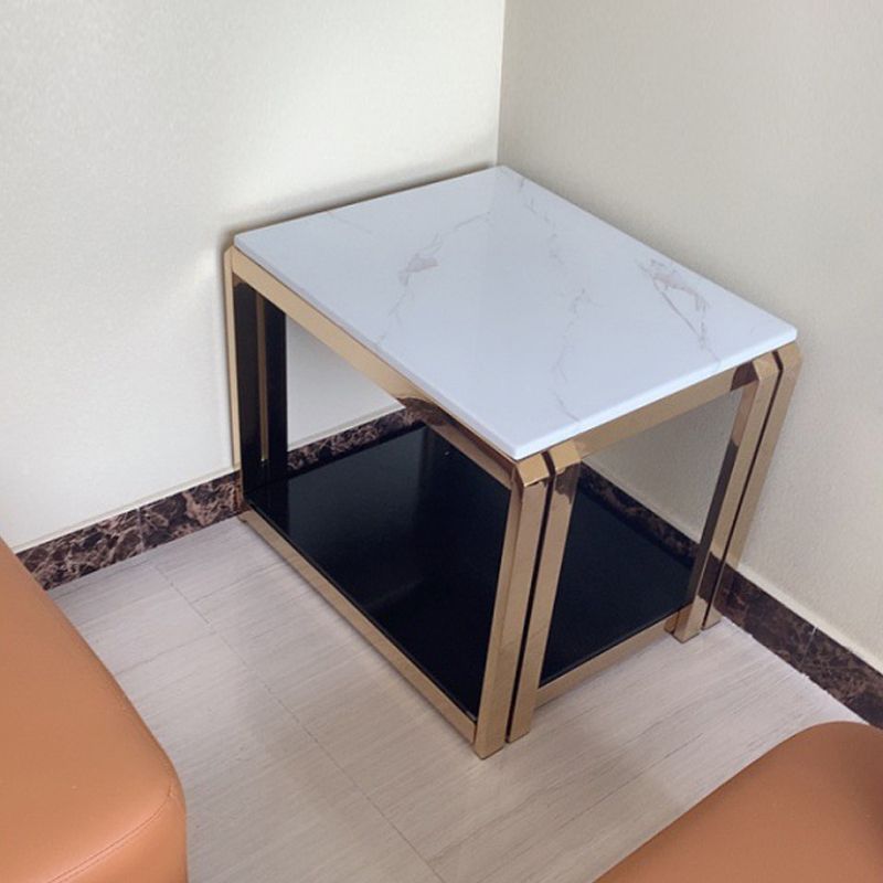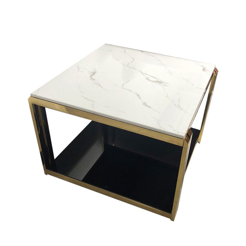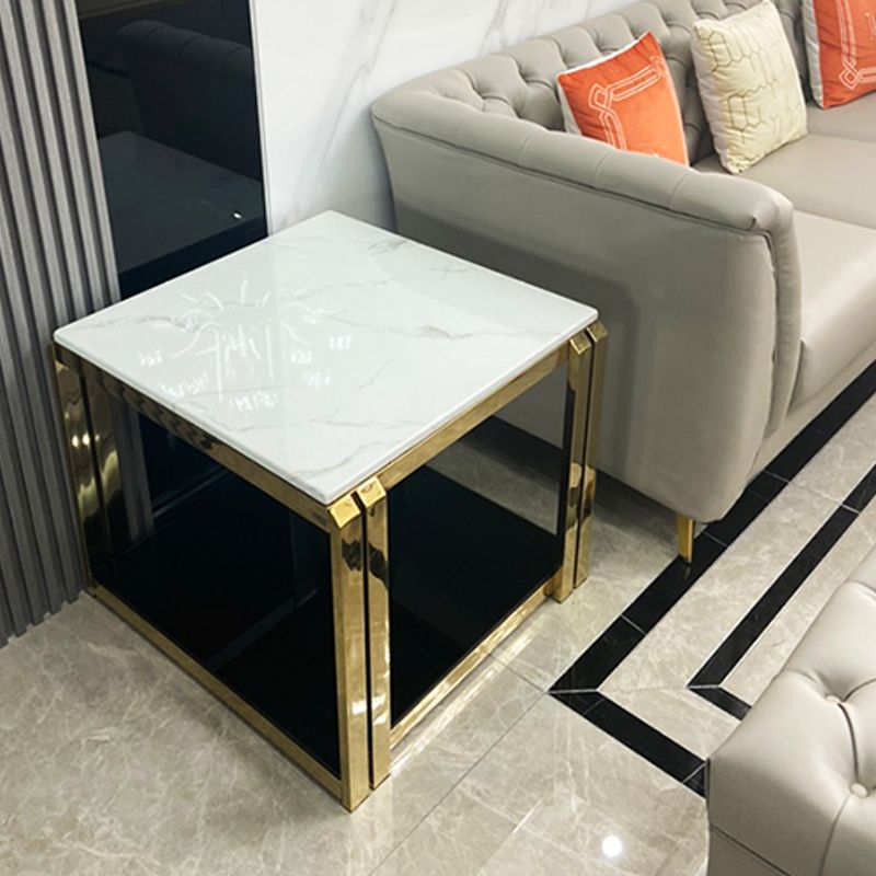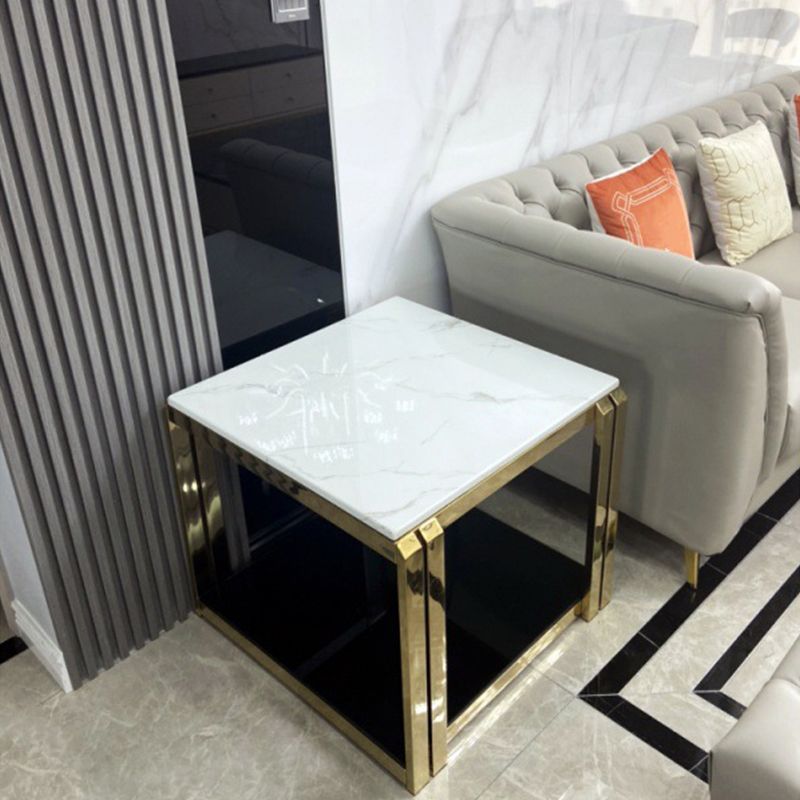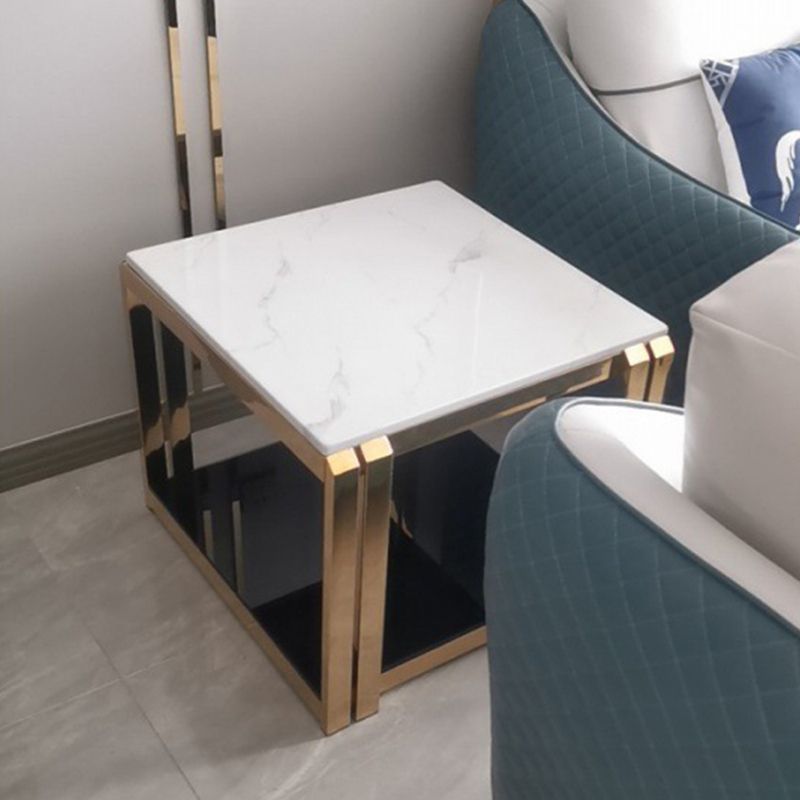 Tabella di estremità del blocco quadrata in acciaio inossidabile moderno tavolo da tavolo angolare in marmo laterale